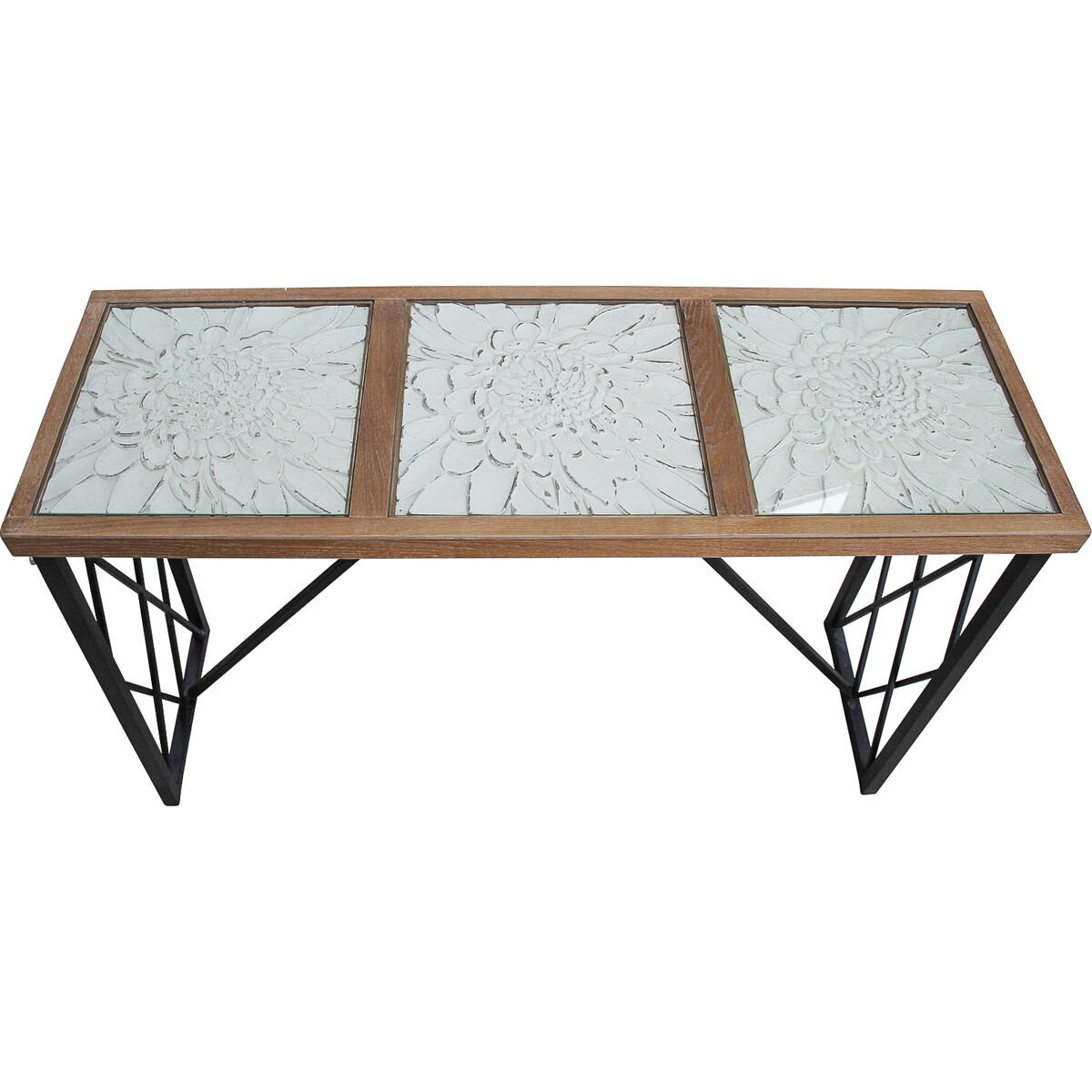 Proportion does matter and when it comes to adding pieces of furniture to your interiors it's critical to find the kind that will help enhance the space and not make things look cramped. Here is a console come multi use table that will line up against the wall and its three - square plaques with its gorgeous resin made pattern in grey will add to the subtle charm of the setting. The combination of metal, wood and the soft shades of the top adds to the classic look the table possesses. The usability too makes it a wonderful pick for all kinds of spaces. the table top is large enough for you to place lamps and books - are facts or whatever that needs to be placed there. Add it to any room of your house and feel its classic design add to the beauty of that space with its elegant and versatile presence that is ready to be flexible depending on the need.