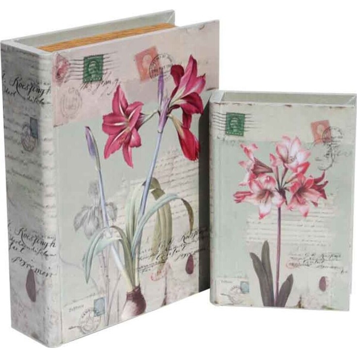 These pastel hued, green and rose treasures are decorated with the design of pink lilies on a field. The pages are covered in stamps and hand written script that makes it seem as though it were straight from a 19th century scientific illustration. These book boxes can be stacked together, stored together, or spread apart throughout a space. Boxes for books look special near any wall of literature and make a practical solution for better organization. There are a lot of gardeners out there who have book shelves; and occasions on which someone will want to buy them the perfect gift to go with their flowers. What better present to give to the amateur botanist with everything than the gift of the lilies on the green book boxes?