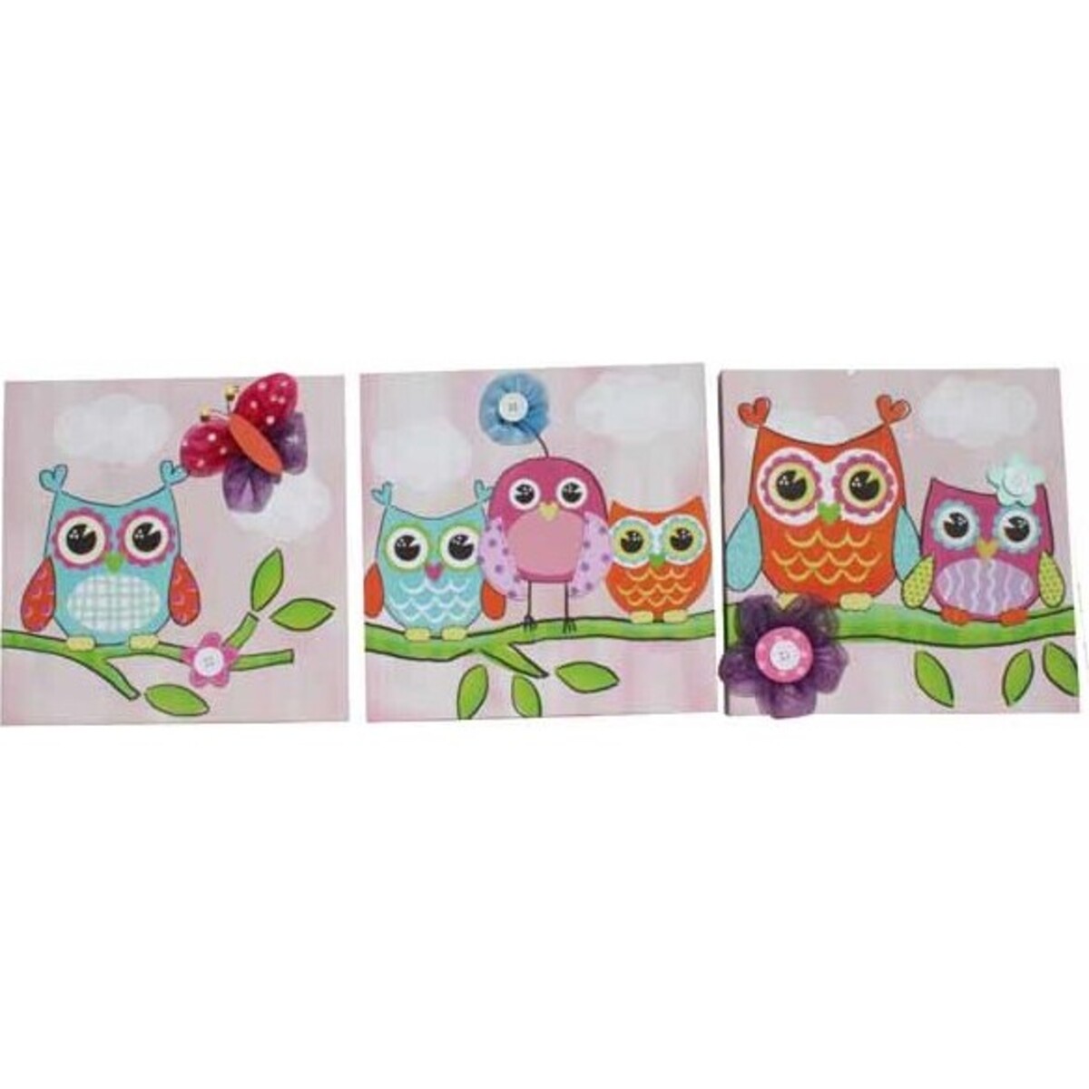 The Canvas Art - Colour Owls - Set 3 is a great display to have. Mix and match the 3 different canvases and come up with a unique and coordinated display.