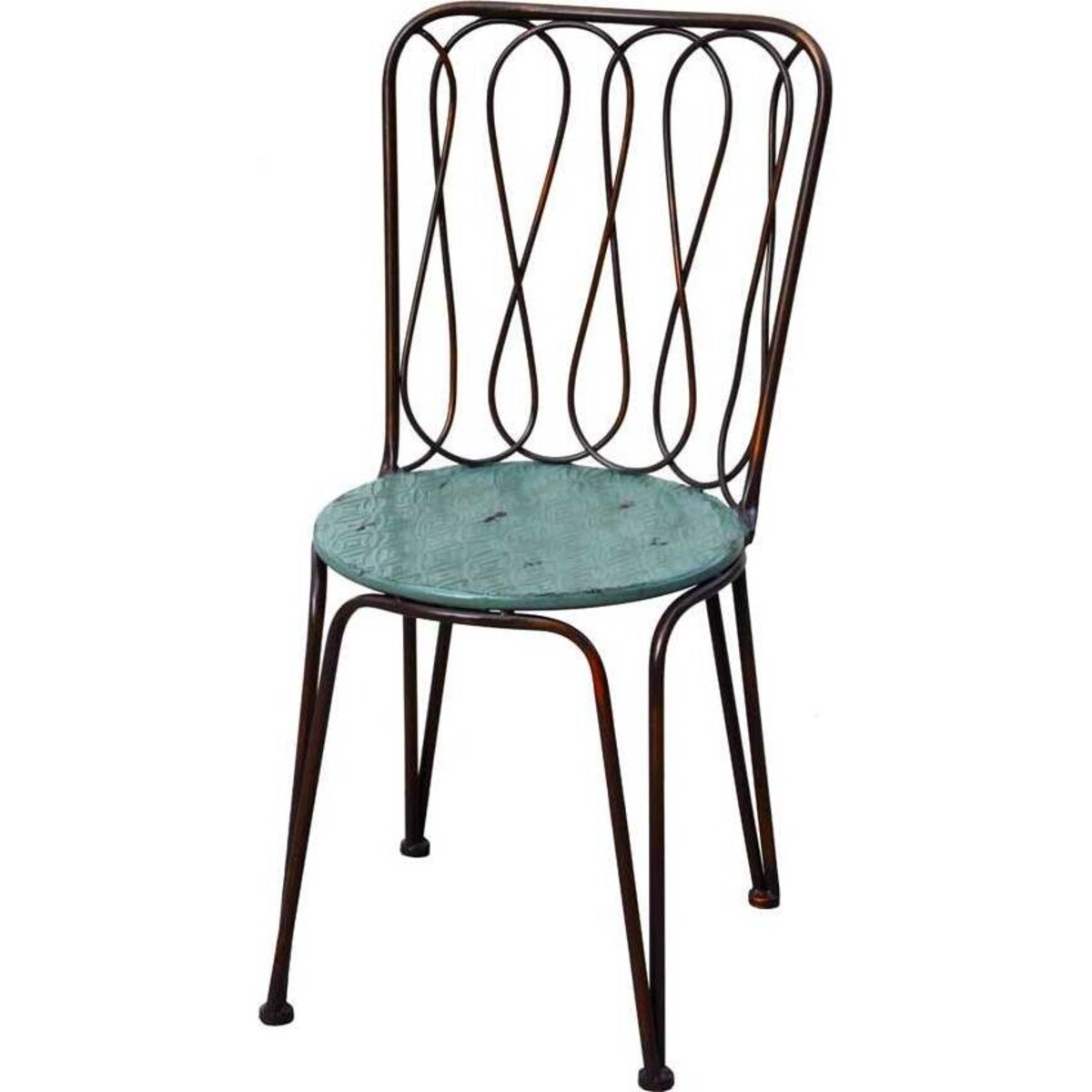 A very Mediterranean blue on the face of the seat that has some form of relief pattern , not too rough to cause skin to wrinkle, but adequately visible to get admired for it. The chair has a sturdy frame and chrome coloured legs that are shaped for perfect balance. The angle of recline is in tandem with chairs meant for relaxation and is not straight backed-so it would ideally be suitable for relaxing time out on the patio or lawn. The size is comfortable for a person of any size and height. The metal body is strong and treated for rusts resistance. It can be used outdoors without fear of serious corrosion or other damage. A great choice to team up with the Blue Motif table as they complement each other perfectly. Two highlights that are noteworthy are-the lattice pattern on the chair backs and the care with which each leg has been given a little round base so as to maximize the balance thus making it safe as much for grownups as for fidgety children.
