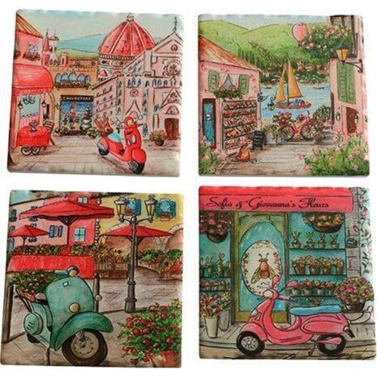 Made from sturdy cork and clay, this skid proof set of four coaster are predominantly pink in colour and the graphics bring with them a happy feel of a lazy morning on the Paris streets - a throw back of the 50s when life was still laid back and scooters were more the norm than cars. The coaster are square and have 10 cm dimension making then large enough to be used for soup bowls as well. Would look particularly charming on the coffee table too. The pink colour of course is most charming and should look attractive drawing much attention to its thematic. The coasters cab be wiped clean and can be used in several space including the kitchen table, the dining table the coffee table. The print on the coasters will retain its colours and vividness despite much usage and being made of cork will retain its shape and remain durable against heat. The top being made of cay carries with it's a shiny smooth surface which is easy on the maintenance and in case of any spillage all it takes is a wipe of dry cloth. The cork base will not allow the coaster to slip.