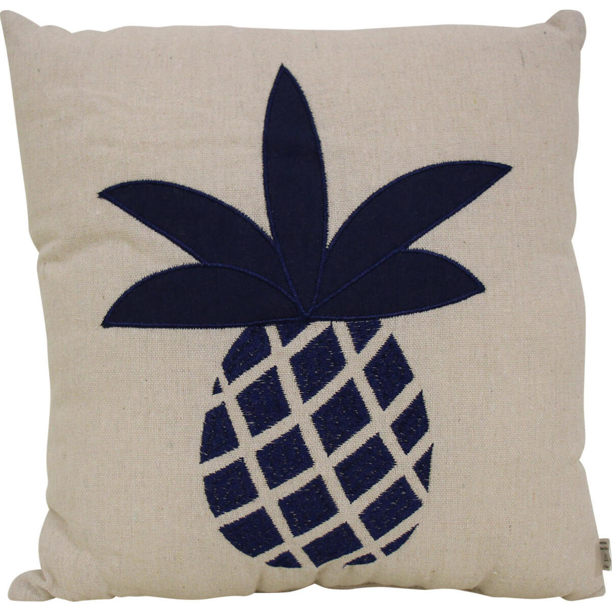 The backdrop is all white-the stunning thread work design resplendent in its freshness. The yellow and green pineapple has been given a completely new colour and yet its unique shape makes it so beautifully identifiable. The crop of leaves on top-ruffled and dense and the cross crossed pattern of its shape given new design prospective adds to its unique kind of charm. add the plushness of organic cotton made cushion to any space-be it your bed settee, the children ?s room or your own den- thus design will lift up the formal stricture and loosen up the air to make t ore cheery and filled with a modern kind of quirkiness. After all the look your spaces deserve comes as much from high quality fabric and functional features a sit does from perfect design choices and this blue and white pineapple patterned cushion is anything buy typical. The square cushion will combine wonderfully with nature-based colours like green, yellows and solid shades.