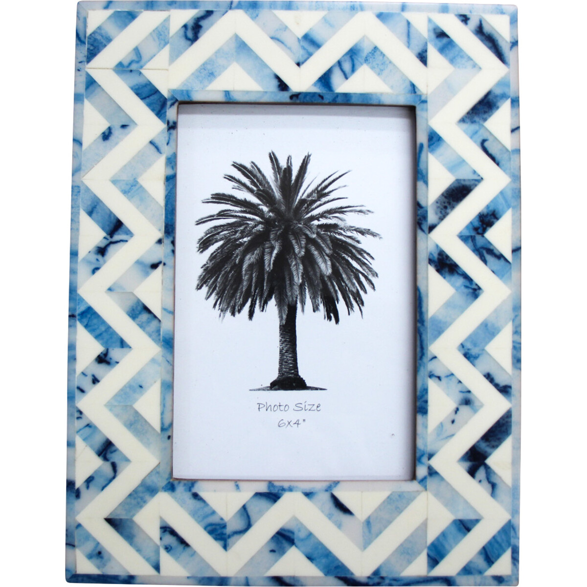 The Imari picture frame is specifically designed for photos measuring 6 inches in height and 4 inches in breadth. It is made from resin and Medium-Density Fibreboards (MDFs) that is polished to a smooth, glossy finish. Due to the quality of the materials, it doesn't require much to maintain. All that is necessary when it becomes dusty is a simple swab with a piece of dry or a little damp cloth. The exquisite interlace of blue and white zigzag lines produces such a beautiful pattern that when closely looked at, one can easily discern the shape of several triangles. Customers can hang it on walls or simply place it on tables or counters.