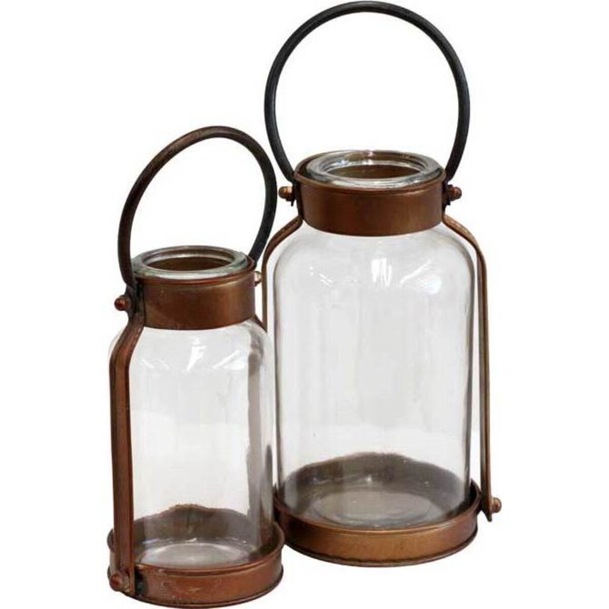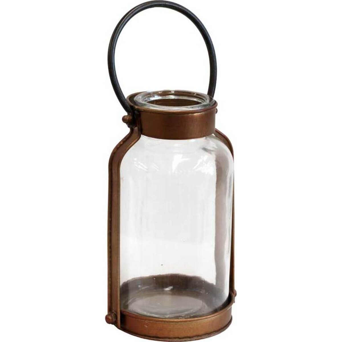 Made form high quality glass, this reasonably tall bottle has a height of 21 cm and is held in frame of metal that holds it from two sides while travelling to its rim and creating a broad rim to which is attached the handles. The curved handles make it easy to carry the bottle when the need arises. The base too has a metal roundel. The diameter is not more than 11 cm and that makes it a perfect place for a pillar candle or to place some fairy lights if the party moves to the outdoors. A classic use of two completely diverse materials that looks starkly attractive. The usage of this bottle could be for so many things but in home it is one's innovative and creative ideas that dominates the personality - maybe for placing some ferns or coloured shells and pebbles - dry petals or even some very sentiment rich keepsakes - the precious little things that keeps us happy could all be kept in it. The clear accented solid glass and metal creates its own distinctive look.