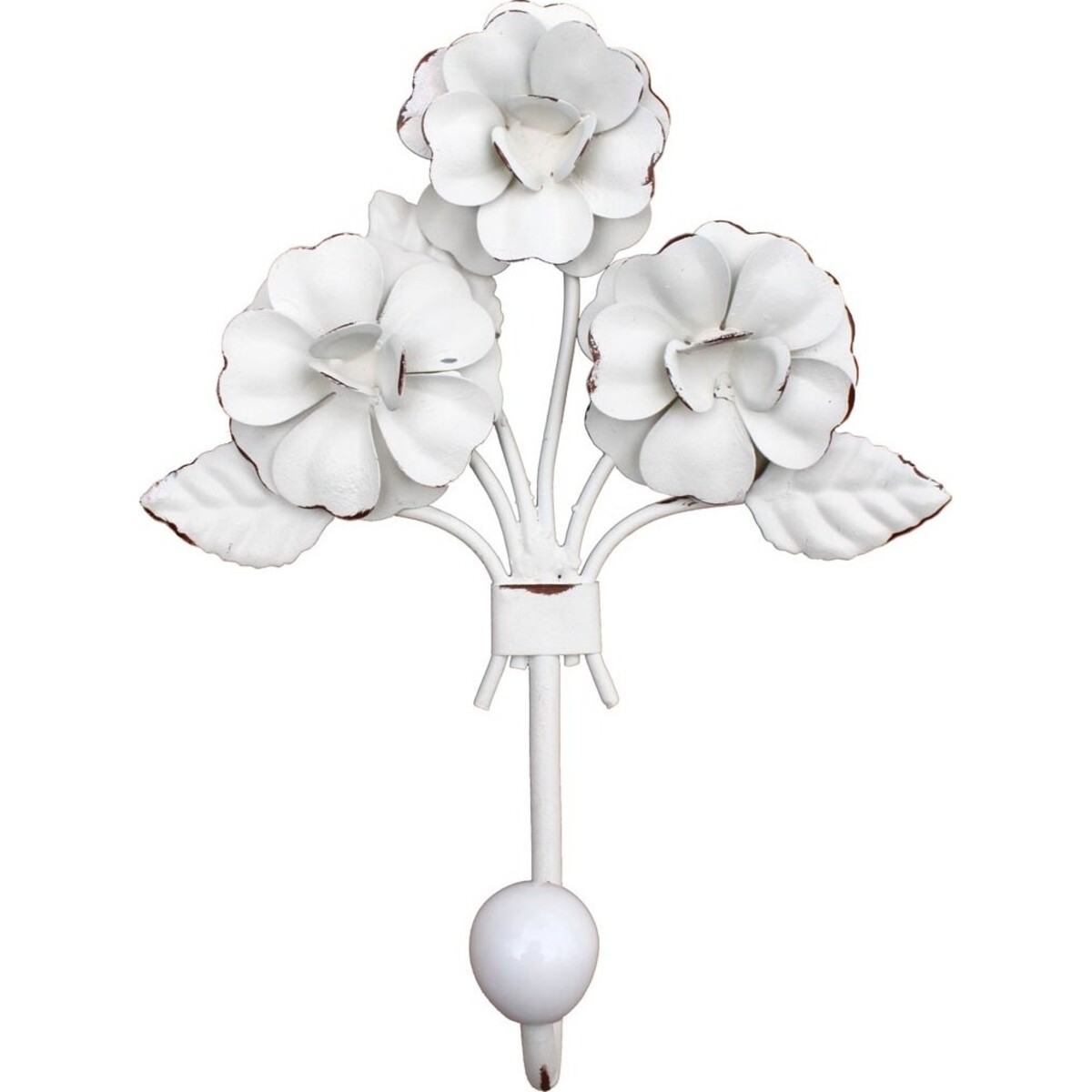 The white hooks are comprised of three flowers with attached leaves that help accent their beauty. They're bound together and attached to a single white hook that has a large ball at the end. The flowers and leaves have a slightly worn appearance which only adds to their charm. They're not only sturdy, they're also actually pretty to look at. They would make a perfect addition to any area of the home. Other than hallways, they would look lovely in bathrooms, foyers, sun rooms, porches, closets and any other small space that needs the function of a hook with a floral touch. They complement almost any style of décor from country charm to fancy florals.