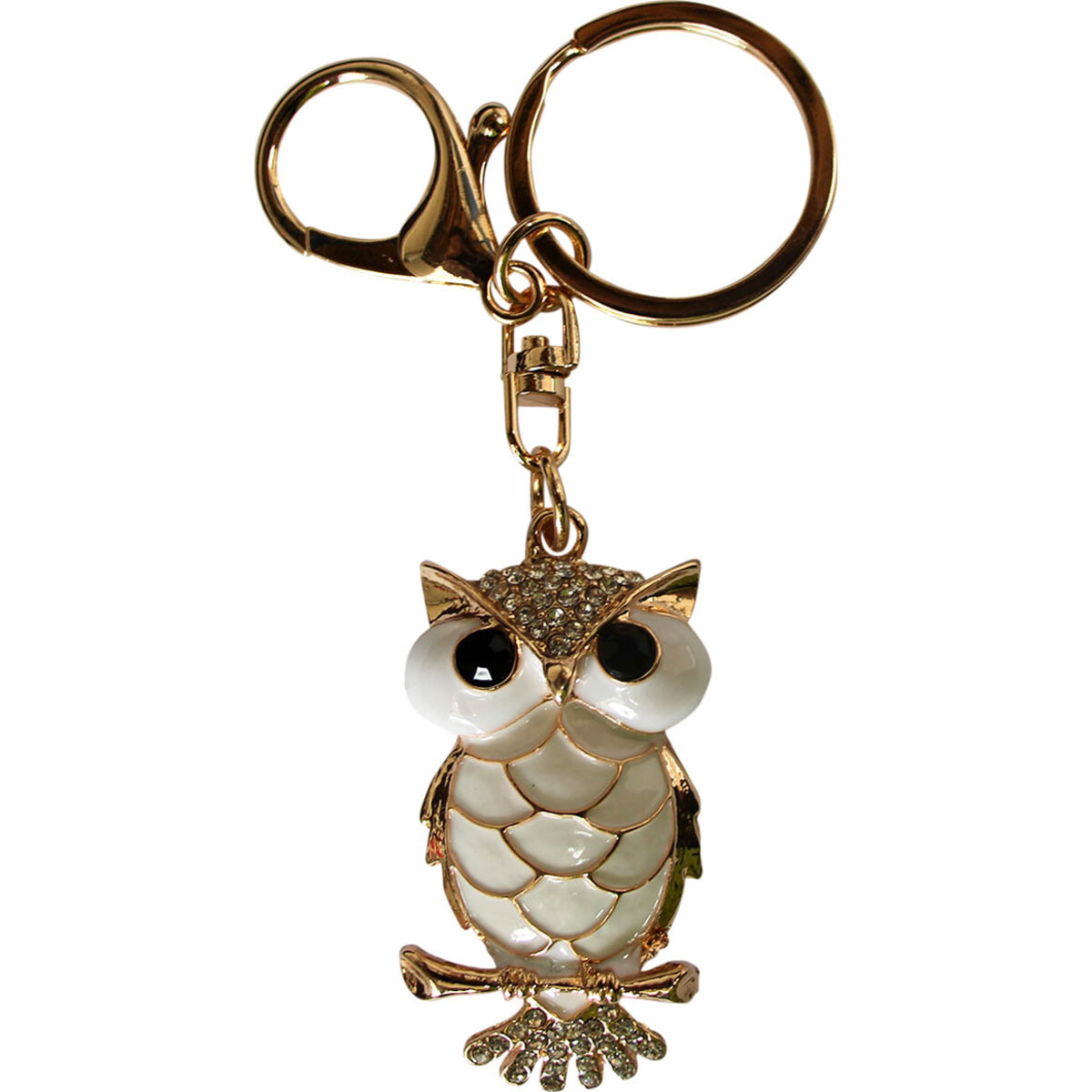 A key depicts safety. Keyrings are the first thing reached out to when keys are being sought for. Keyring Owl White can be displayed by hanging them on the side of one's mirror, on one's chest of drawers or countertops. Because these keyrings also perform ornamental functions, clients can pick a place to display the keyring Owl collection and show them off to their friends. Keyring Owl White is beautifully decorated with crystals and tiny stones to further accentuate the beauty of the piece. The metal material is lustrous, and malleable, making the piece flawlessly shaped. This key-ring is a great choice as a token gift for friends and family. Owls are lovable birds and would make a lasting impression.