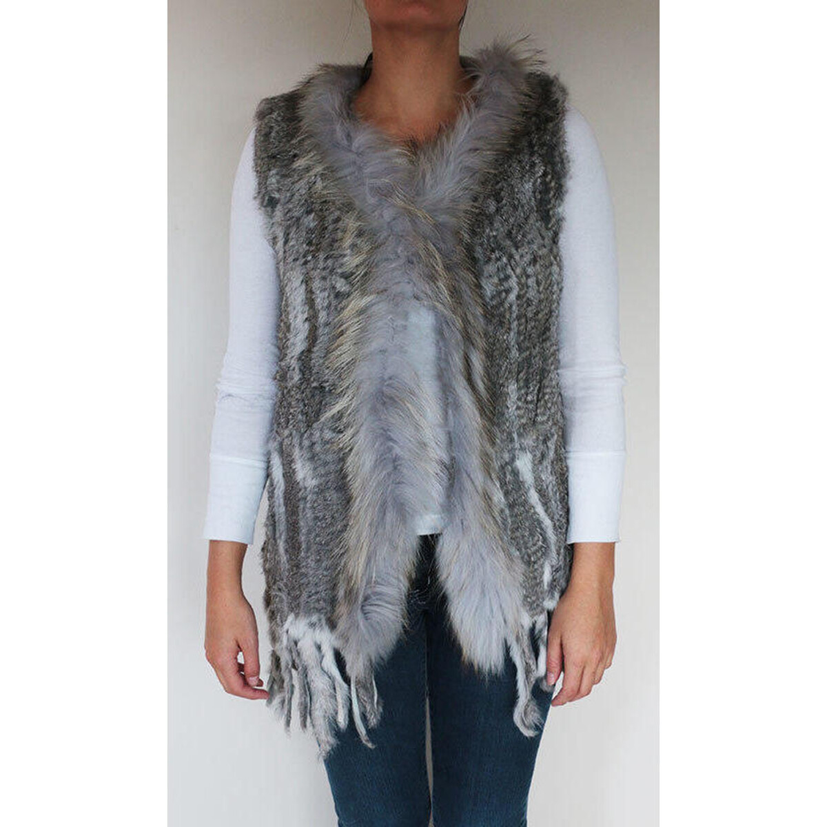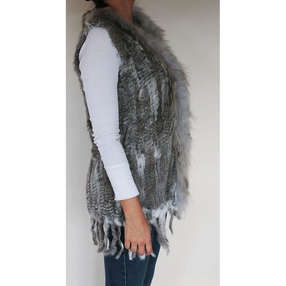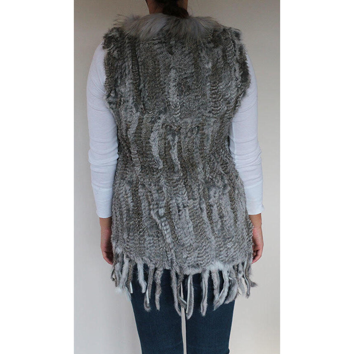 Go for winters this season with lapin fur coat that combines the utterly soft and light weight comfort of rabbit fur with a simple style. For ages rabbit fur has bene used for fabricating wonderful jackets and bringing back the charm of this age - old style is Lavida with this sleeveless grey jacket that has a soft grey colour, the kind to combine well with all our latest dressing needs. Worn with denims, formal trousers and blousons or with high neck vest, it will look smart and well fitted creating a stunning silhouette despite its apparent fuzziness. The lightweight fur has been cured to last you through much usage. The longish jacket is the kind to cover your hip and keep your upper torso warm and comfortable. The hem on the lower side has a tasselled finish that adds a touch of bohemia to the look. The collar and the single front closure has a trim of long haired fur to contrast with the short - woven fur in the rest.