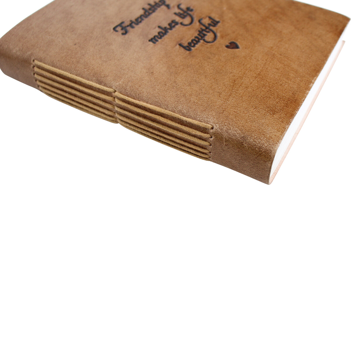 Leather Notebook Friendship is a unique resource for one of those times a friend needs to be cheered on. The long-lasting and rich brown leather is proof of friendship that can stand the test of time. This peculiar leather notebook can be used to collect beautiful memories of quality time spent with friends and a constant reminder that friendship makes life beautiful. Note-taking at work and school is made easy. Certainly, notebooks can be used for brainstorming and noting words of affirmation.