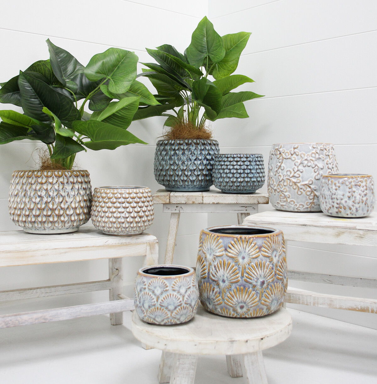 The Pot Petals S/2 B/W is sold as a set of two planting pots both of which though showcases a delightful simplicity in design, nonetheless possess a classic aesthetic appeal which would blend in seamlessly with every type of decorative setup inclusive of modern décor, minimalist and even traditional themed décor. Given the fact that there are two different sizes of small and large, there is just the right size for that specific plant decorative need which your customers have.