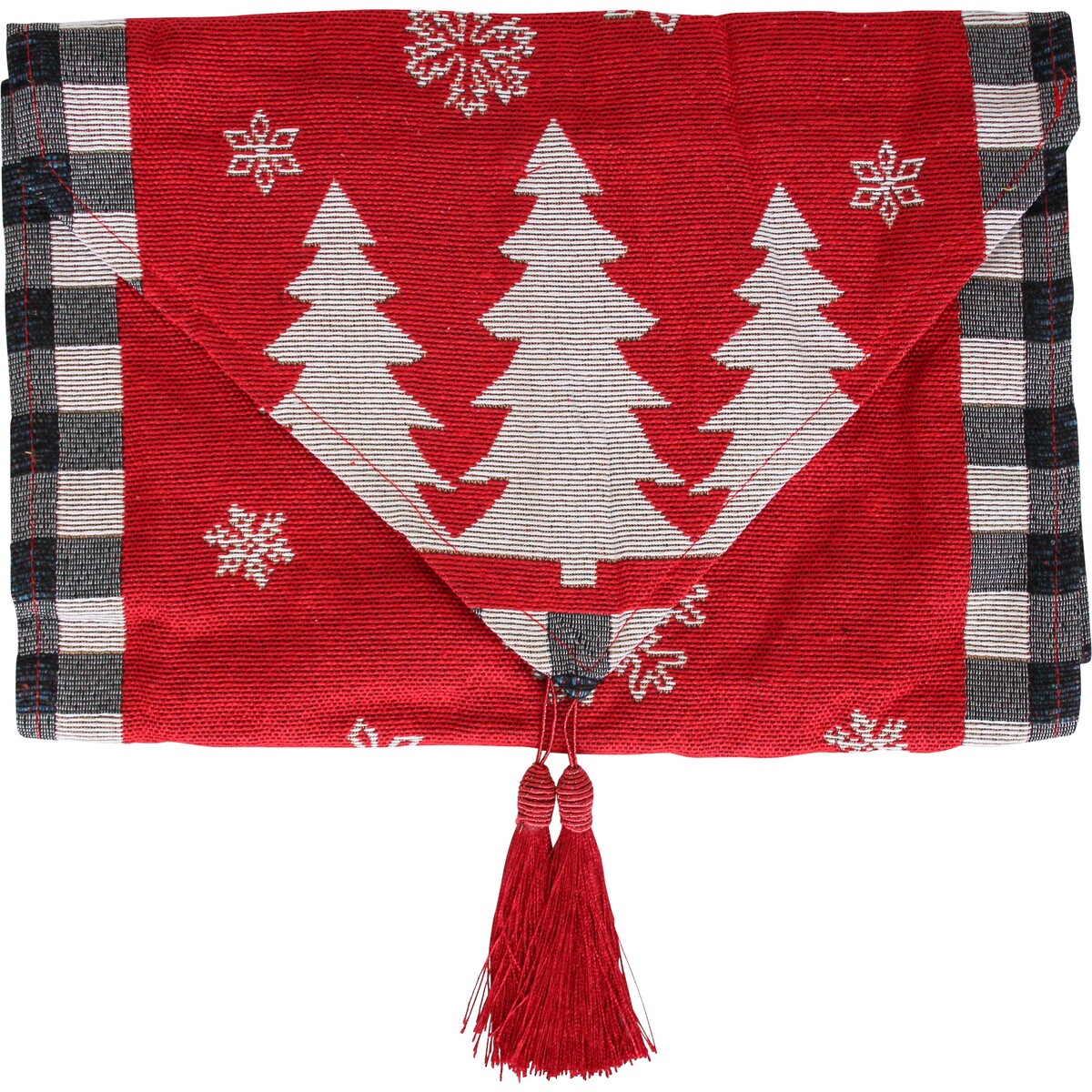 Hosting the family during the festival time means making your much loved dishes and the most talked about goodies that you always lay out for all to enjoy. Create just the right backdrop for them with this gorgeously crafted polyester made runner with its bold typographic design. While the red and white stand out as the defining colours, the checquered black and white edges and the snowflakes in the design look equally charming. The tassels add a touch of detail that is winsome. Add this t your dinner table, the console or any space which needs to declare your love for the much awaited holiday season! Being 180 cm long, it would be most suited for a six - seater table.