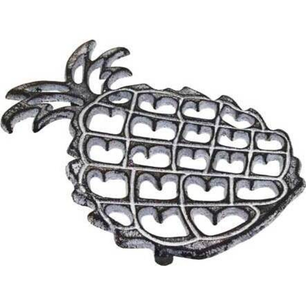 Trivets are very useful on tables that need to be protected from the heat of piping hot dishes. They could sometimes be lost in the paraphernalia of the rest of the table setting, but not his handsome metal trivet that is so period and dated in its look that one will instantly notice it. The shape of a pineapple has been beautifully created with great expertise. The 20 cm broad trivet is about 14 in length and may be placed on the dining table to serve dishes. Its detailing of leaves and the tiny eyelets as if of areal pineapple makes it truly special and quite an attention grabbing add on to the table. Kept on any table and adorned with a foliage plant set in a small planter too will make it look really special. Such metal crafted decor and home utility items form Lavida carry its own stamp of exciting design and classy good looks.
