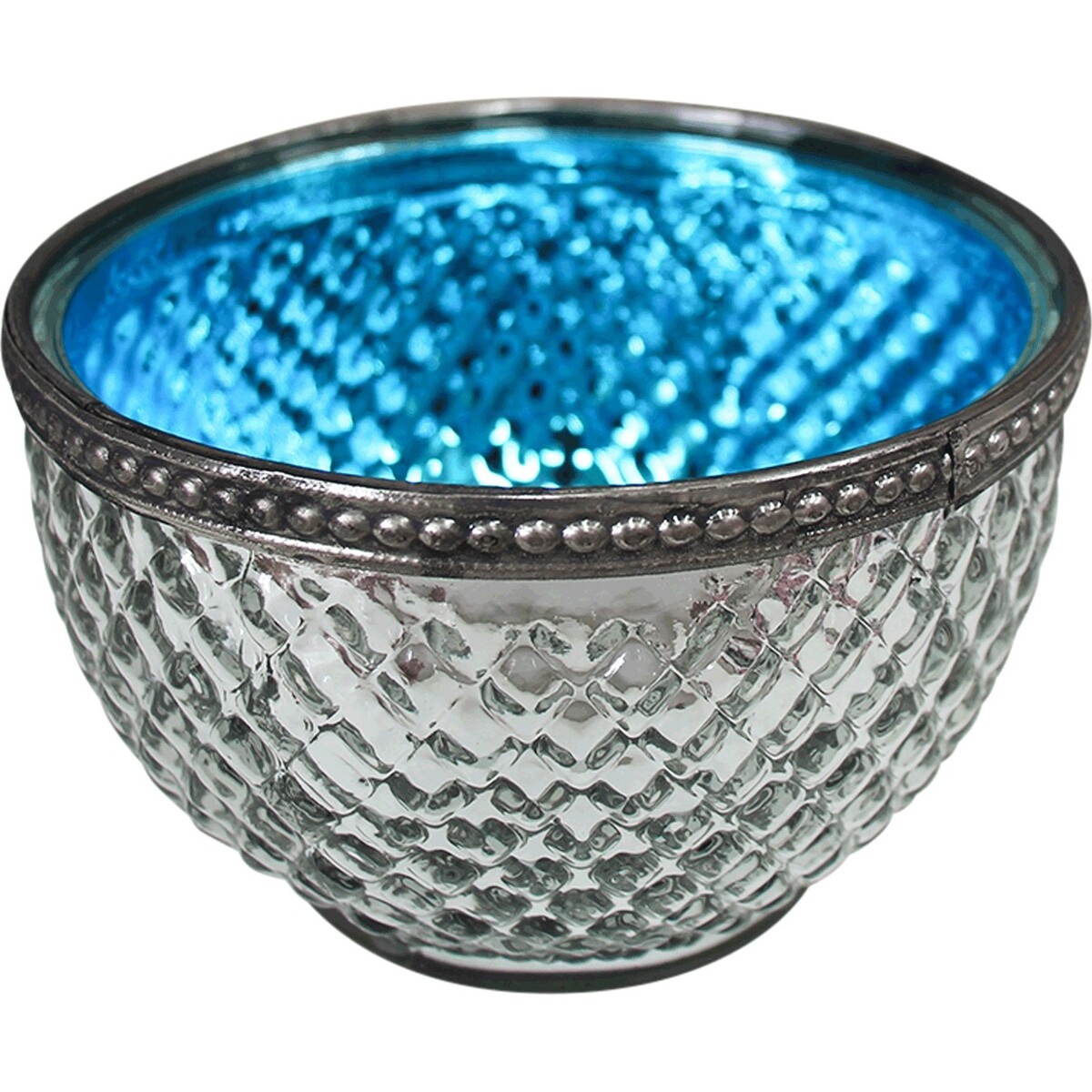 The Votive Bolla Bowl Pop Blue Large is a peculiar piece that showcases rare traits and characteristics. Based on material composition and physical outlook, it stands out amidst decorative peers. Ingeniously created using a fusion of pure quality glass with top-rate metal, it combines the strength of metal with the renewable durability of glass. Apart from that, the interior shimmers in a colourful blue while the exterior is glossed in glistening silver colour. This glassware is an incredible decorative item that belongs to a class of its own. Now imagine if used to light romantic candles, it would look superb.