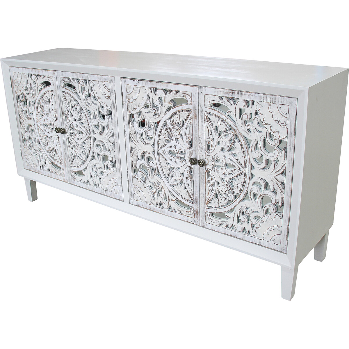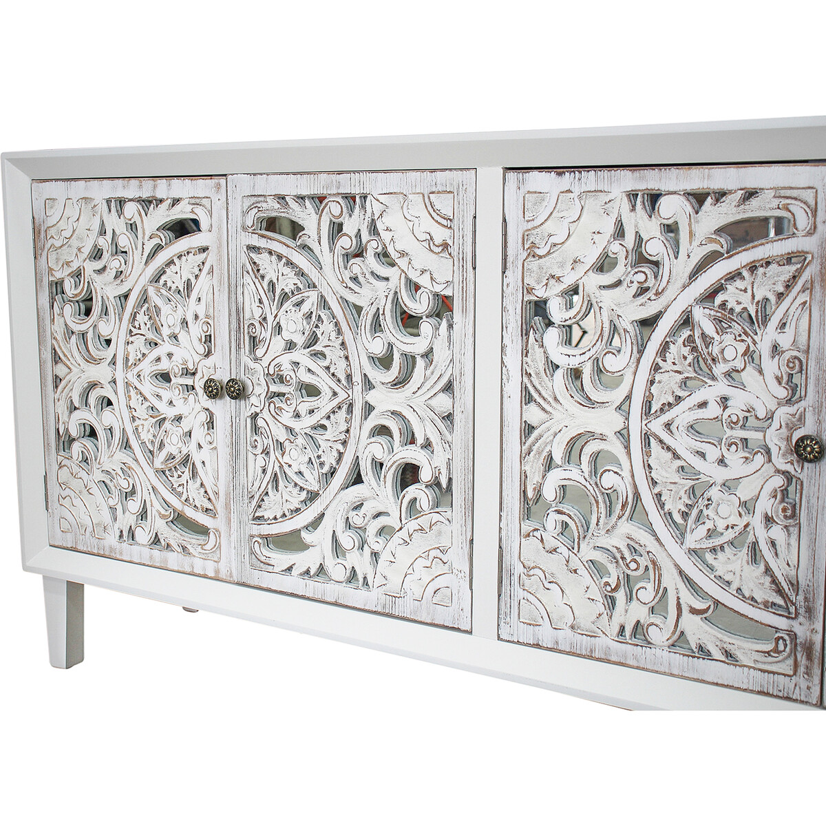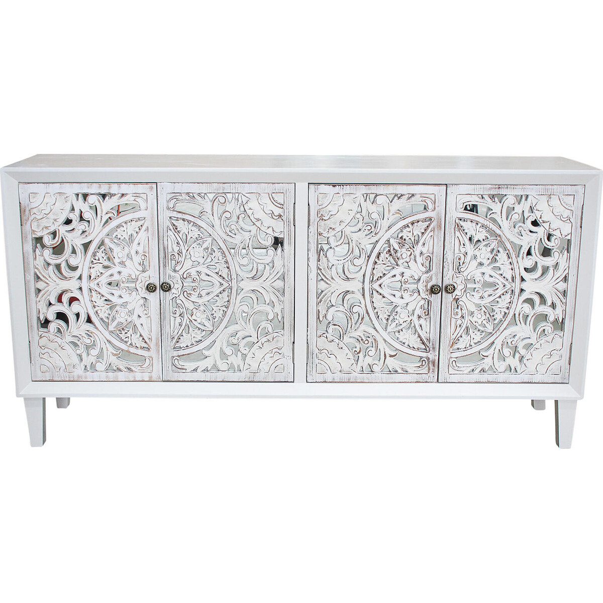 Cabinet Wood Carve 4 Door has a natural wood grain that heightens its intricate detailing. This cabinet looks like a prized antique, and this cabinet takes centre stage in one's interior. Cabinet Wood Carve 4 door has a neutral hue that complements any interior style. This piece has a safekeeping outlet that prevents dishes from falling out of the cabinet. This piece is entirely carved with timber, a durable wood chosen for its long-lasting capabilities and natural allure. This multi-door cabinet is handy when one needs extra storage space. It could contain serving ware, table linens, cooking sheets, trays, cookware, and tableware.