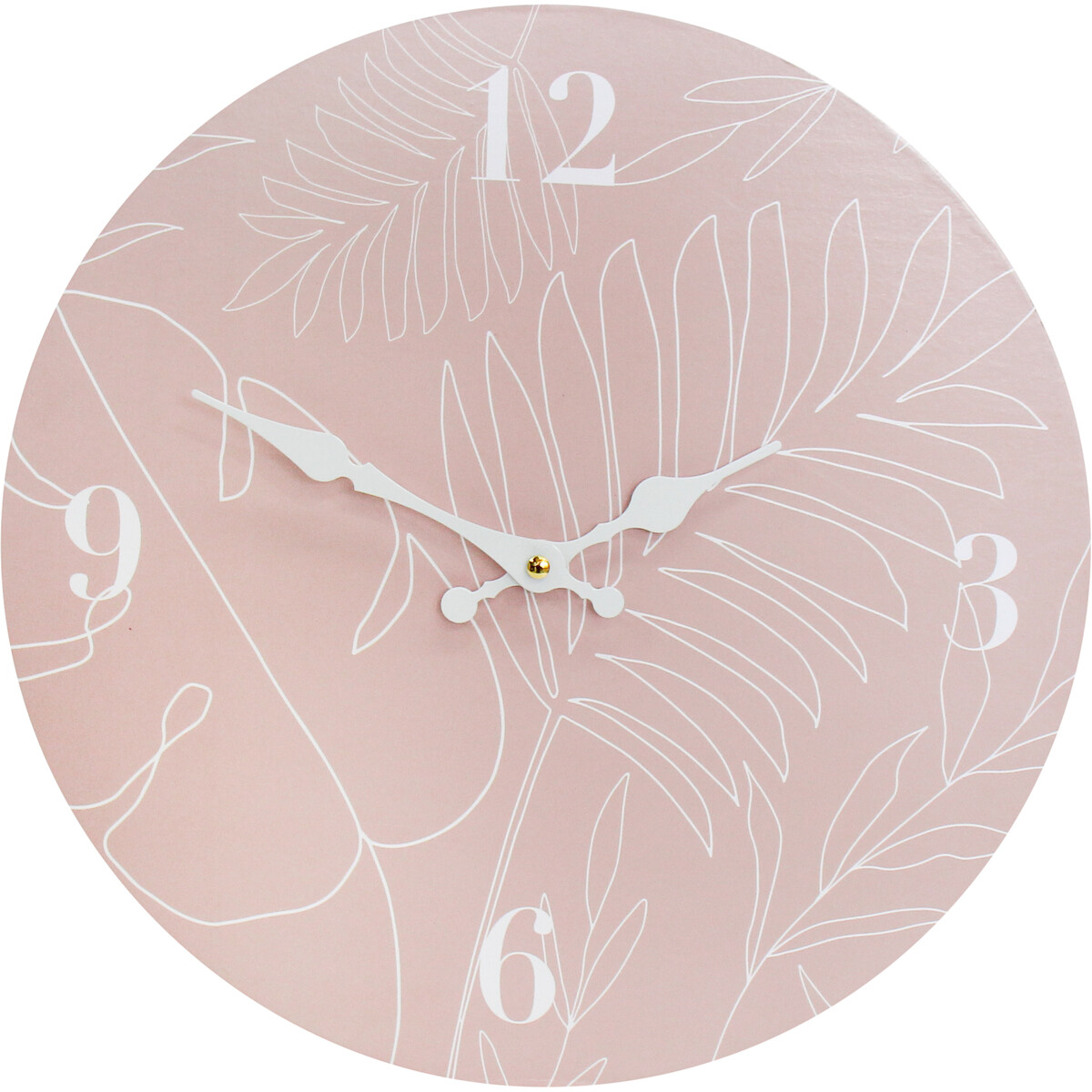 Clocks apart from partnering with you to keep you ahead of your schedule for the day can also add a focal energy to walls. This piece with its 34 cm diameter adds to its compact styling, which could fit on to smaller walls spaces as well. Th delightful beachy look comes from the pal print in white - delicately visible in the pastel ink backdrop. A great find for those who look at functional utility and décor accenting to be a necessity in all they place on walls and this clock summarily fits both bills. The rim less design adds to its modern and chic kind of style. Will look as great in your bedroom, or right above your study table or console - where you could add some more beach look accents to complete the theme. The usage of white in the hands and the print on the face adds to its fresh and lilting appeal.