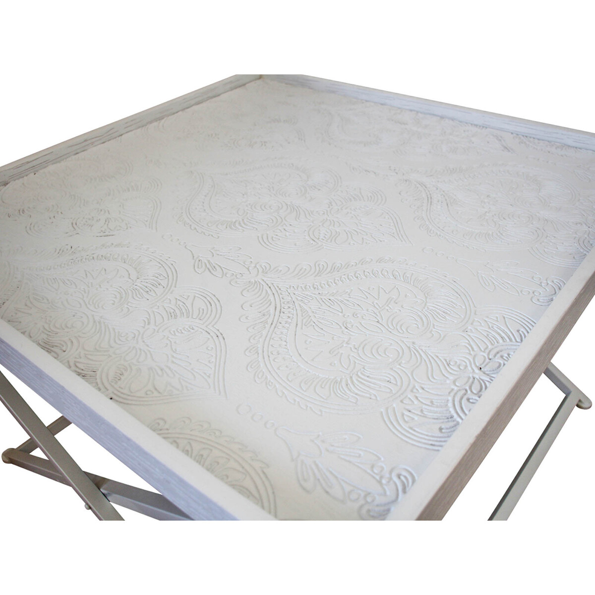 The Coffee Table Carved Tray is handcrafted using 100% natural timber wood with an ornate design etched onto the surface of the tray. This is a product your customers would love to have in their living spaces as its material and designs are top notch. It is designed not just for aesthetic appeal alone; it is also highly functional as a coffee table and can also be converted into other uses. With a perfectly squared flat surface measuring 80 centimetres in length and breadth, it is large enough to accommodate a couple of coffee cups. Due to its immaculate white finishing, it is important that you and your clients take care in handling it so as not to dent its whiteness.