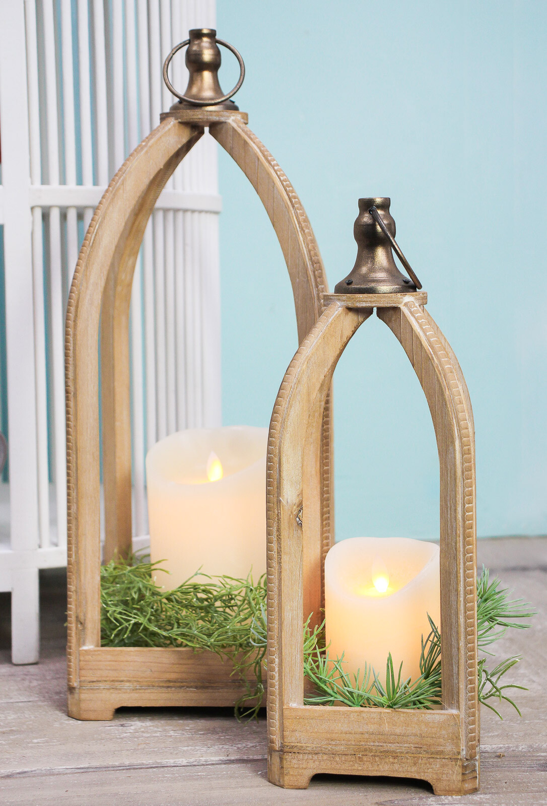 There is an elegant kind of charm to usage of lanterns in your spaces because they remind you of times when evenings we're all about the family and the hearth and people coming together to spend time in the relaxing Ambience of home. It's in the soothing lights of lanterns that you can build a relaxing mood. It's also suitable for special occasions when you want to give your room a softer hue in and reduce the starkness of brighter lights. Made from Timber and metal, the arched lantern can be teamed up with a smaller version of the same style to make a more profound statement. You can light up the walkway into your home by placing A pillar candle in its little platform you can light up a corner of your living room with it inviting a stunning gracefulness into the space.