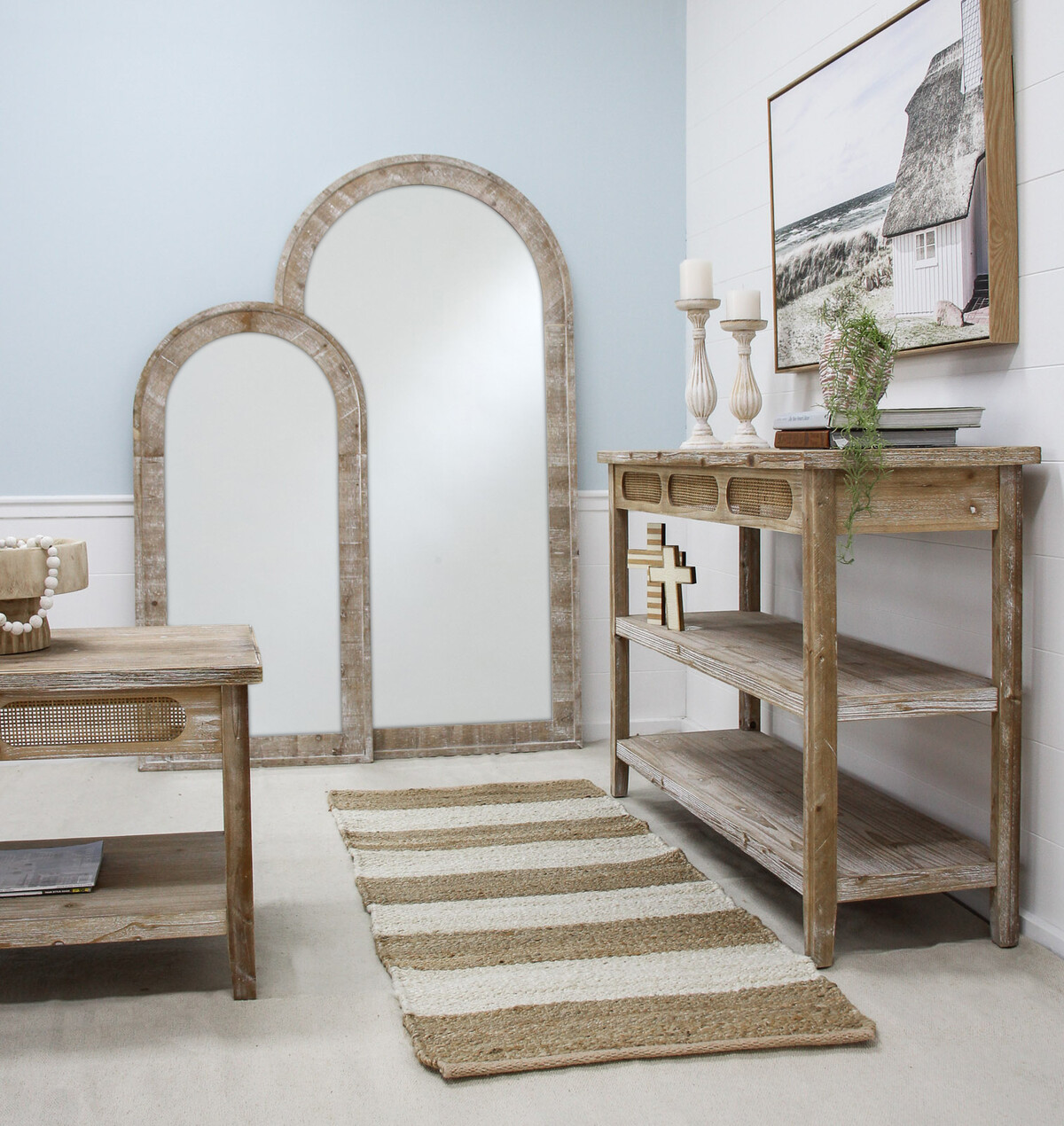 Mirrors, in contemporary times, are not simply reflective items which are to be hung on walls and looked at only when there is a need for self-assessment. Rather, they are now considered as crucial elements of the decorative atmosphere of a spatial environment. This is why this # Mirror Coastal Lrg has been deliberately crafted with such ornamental overtone such that its cool, calm appearance will add such neutral glam style to the overall appeal of a room or interior spatial setting. It is made in a large sized dimension which measures 60 centimetres in length, 3 centimetres in width, and 120 centimetres in height.