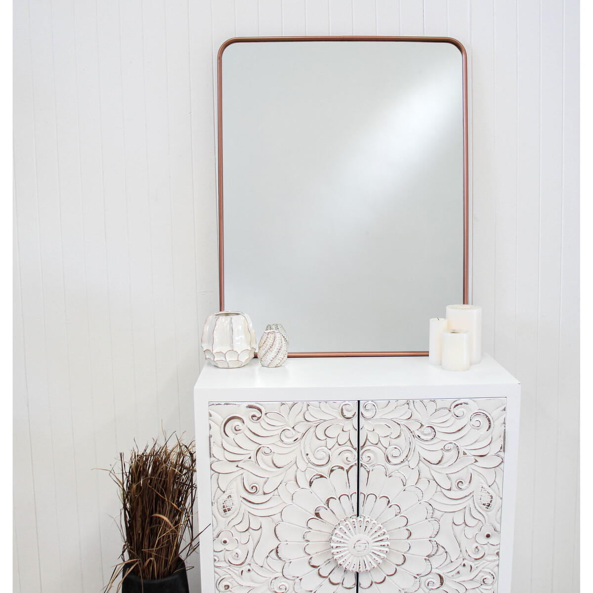 If you haven't thought of stocking up on wall mirrors, then this is the perfect time and opportunity to do so. Mirrors are absolutely fast selling items. This Mirror Rect Moderno portrays simplicity in appearance while standing tall at 90 centimetres and 70 centimetres wide. With a reddish-brown coloured frame made from top quality metal, it exudes elegance as this palette blends in with a variety of other colours without distorting the elegance of the d?©cor in which it is used. Your customers would find it useful in brightening up their living spaces. The glass is of premium quality with such translucence that gives the user a clear, bright reflection.