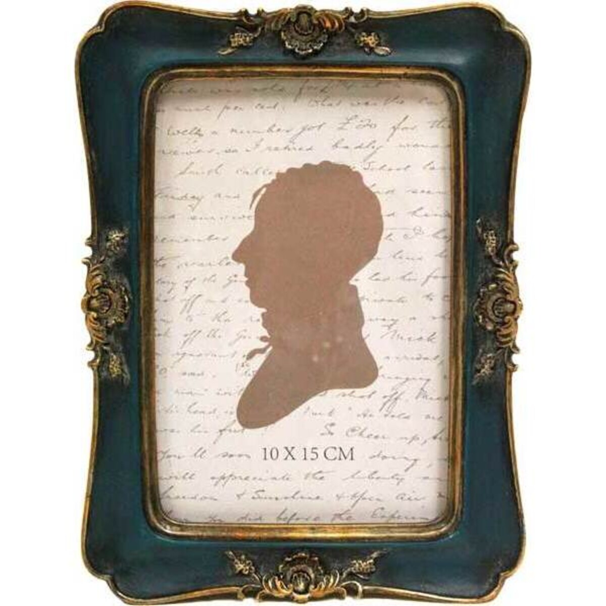 Introducing the medium Teal Frame from Lavida. The teal frame features an ornate gilded trim around the edge and the center photo section with a single carved detailing on each side. It's the perfect frame to use for the photos for which simple black or brown frames just won't suffice. These add a dose of elegance not only to the photos, but to your home as well, and you'll simply adore displaying them right where you can see them every day.