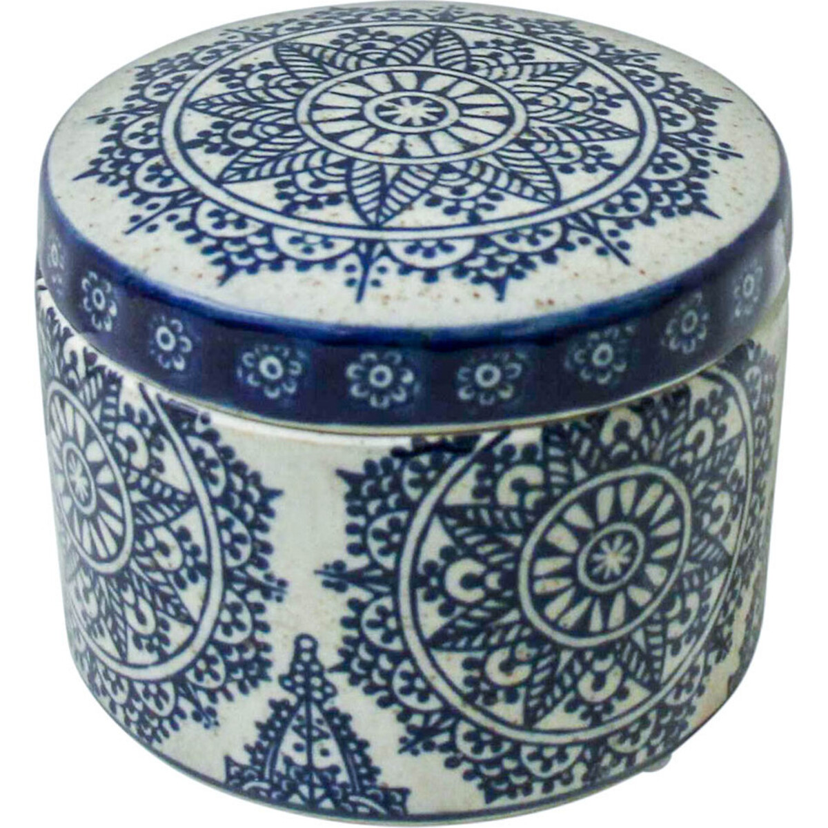 This jar from Lavida has intricate designs with a pretty blue flower pattern on the edge of the lid and is finished with the highest care and quality. Its rustic, aged, and vintage - inspired looks will satisfy your decorative needs and its functional design is perfect for storing items or holding collectibles.
