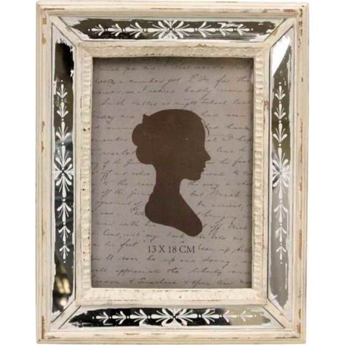 Introducing the large White Insiso Frame from Lavida. It features a cream and dark brown border that has a lovely white design along the edges. At the center sits the image of a silhouette over a gray script background, so you can either display the frame as is or replace that image with a photo of your own. Thanks to its neutral colours, it can complement almost any colour palette in your home. You'll simply adore displaying your photos in this gorgeous frame.