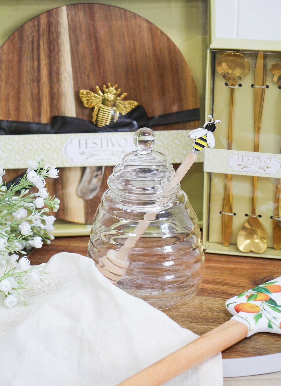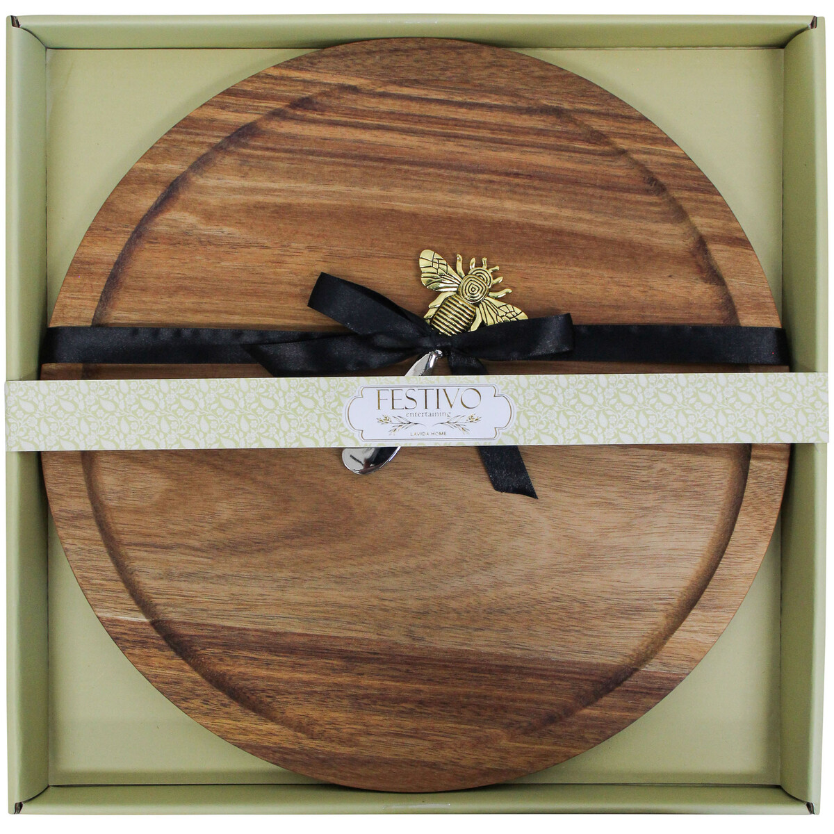 Captivate your client base with the allure of the Acacia Round Board/Bee Spreader Set, an enchanting synthesis of function and flair that promises to be a sought-after piece in any kitchenware or home decor ensemble.