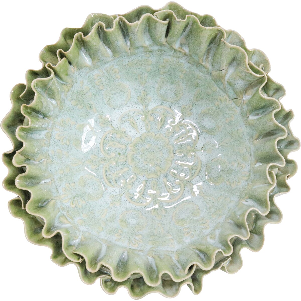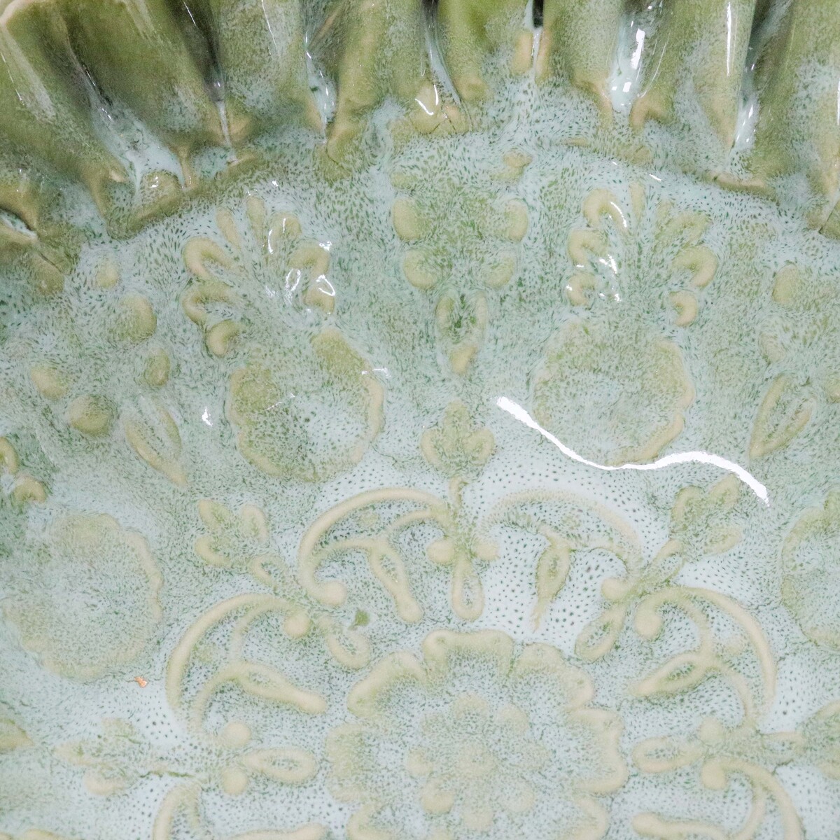 The pale sage-grey glaze is subtle enough to go with any colour scheme. But the intricate botanical pattern gives it a distinctly vintage feel that pairs beautifully with classic and contemporary stylings alike. Expect your customers to comment on the ruffled edge - we find it’s what keeps everyone coming back for a second look, and why these bowls always fly off shelves.