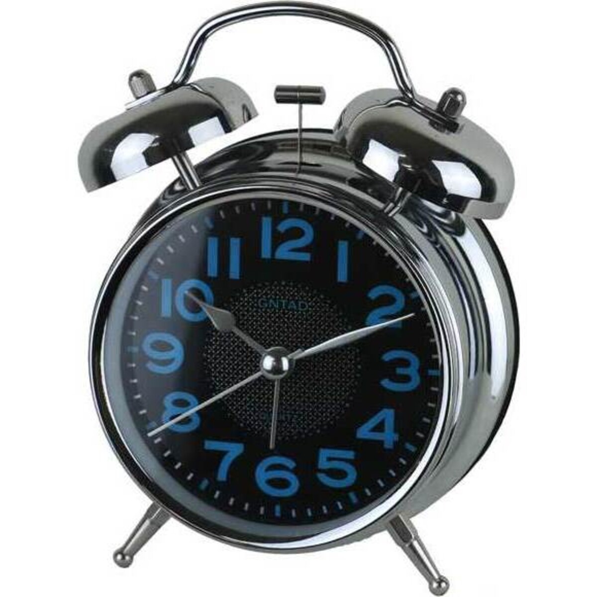 These fabulous alarm clocks feature a black face with bold and vibrant blue numbers so they're easy to see from wherever you are in the room. At the bottom are two metal feet that allow the clocks to stay securely in place, and at the top are two bells that signal that it's time to get up and face the day. They're large enough that you can clearly read the time but they're not so big that they take up a substantial amount of space.