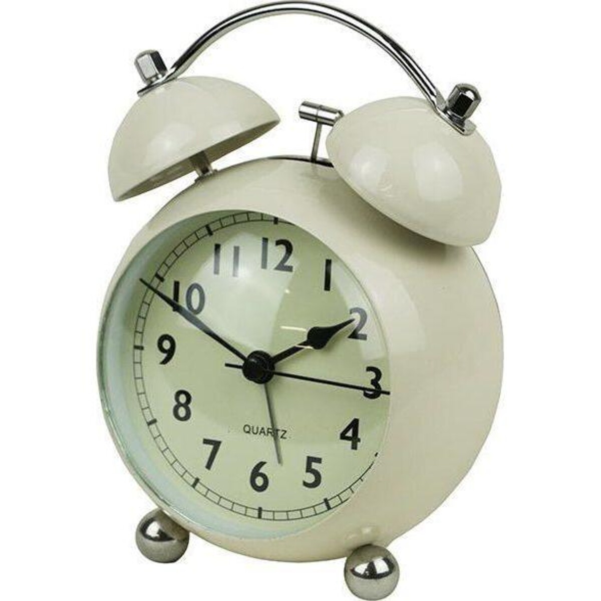 Some of us are passionate about keeping our time deadlines and some of us are always chasing time ?but for both, there can never be m anything more important than having a clock that looks pleasant while making us also understand the value of every passing minute. Here is a gorgeous white coloured metallic clock with very sturdy features that has tiny little round legs, well balanced and really refined in its antique looks. Place it on the mantle or simply add it to your table or bedside and leave all your worries of keeping good time. Wake up on time, get kids ready for school, or simply be ready for the meeting - whatever be your need to refer to time, despite all the digitization, you could revert back to this rather charming way f making time go back a little and see it the retro way. The clock is 16 cm tall with handle on top for easy picking and placing. The alarm has are sounding ring and the body si made of sturdy metal.