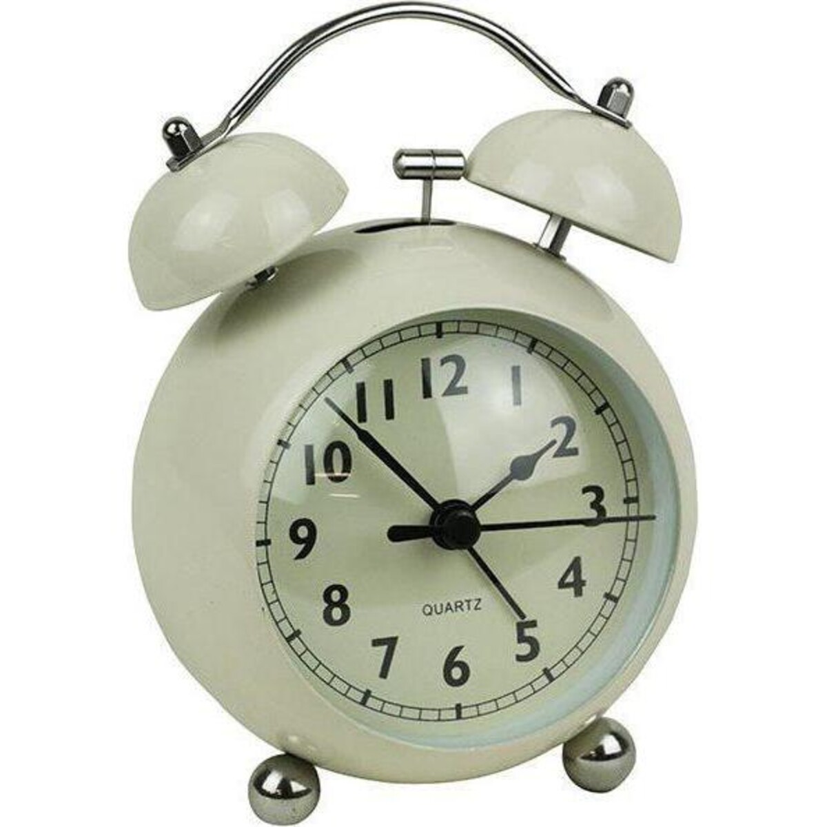 Adding tiny d?©cor accents can be one way of making your home look lovely and another could be the addition of utility items that double up as pretty little accents making dual spaces like bedside corners, study table or your office desk perk up with some style. This white clock with its twin dome is what makes the clock ring with such a lovely tinkling sound. Made completely of metal and having a height of 13 cm with a diameter of 9 cm makes this compact yet large enough to be clearly visible even from a distance. The alarm clock has antique features that make it worth gifting to someone whose love for designs old is own. Place it by your child's bed or on the study table and see how charming the space will begin to look. The clock has two tiny round peg like legs that gleam in their steely colour while the top has this ringer that makes the while operational completely mechanical and so ld world. Battery operated in its modernity; it will surely be one of those utility pieces in your home that you would like to show off.