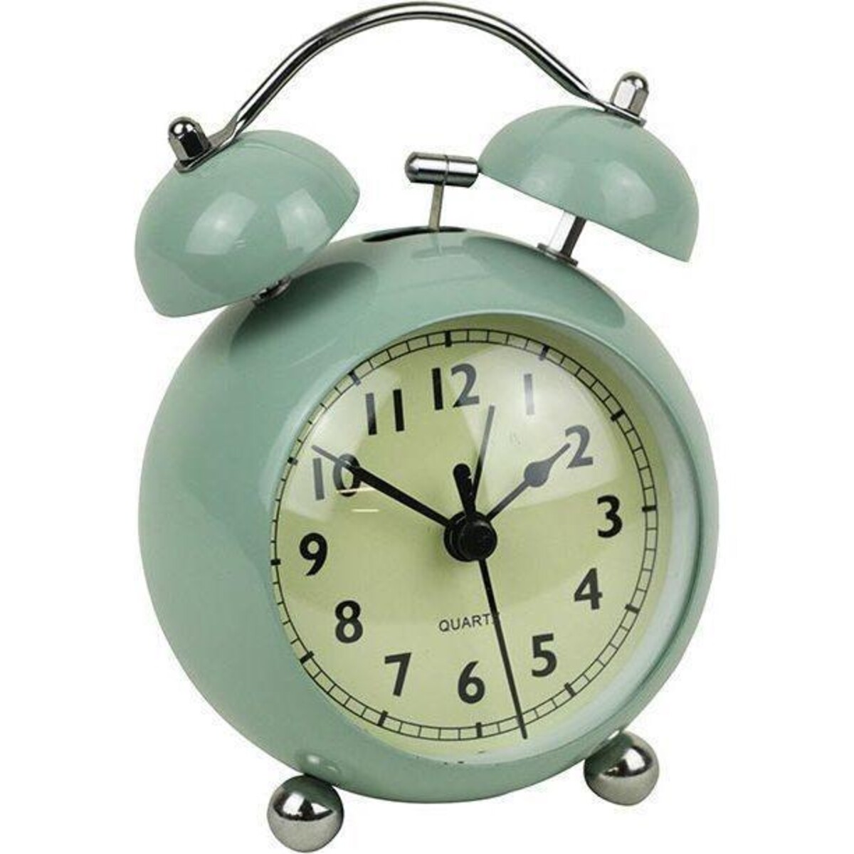 Make time keeping seem artistic with this gorgeously designed retro feel clock that is made of metal, has a glass face and looks visually as appealing as it is acoustically when it tries waking you up from your slumber. This clock stands steadily on its tiny round peg like legs that are made of steel and will make your bedside or study table look rather attractive with its antiquated features .The pale teal shade look marvelous with the white face of the clock and the top with its two domes that creates al the hullaballoo is also another feature that look positively retro. Gift it to someone who has trouble waking up or someone who is very keen on always keeping time. Would surely make a lovely addition to the children's room. It is battery operated so despite looking retro it has ease of use and works as wonderfully with precision as any modern time piece.