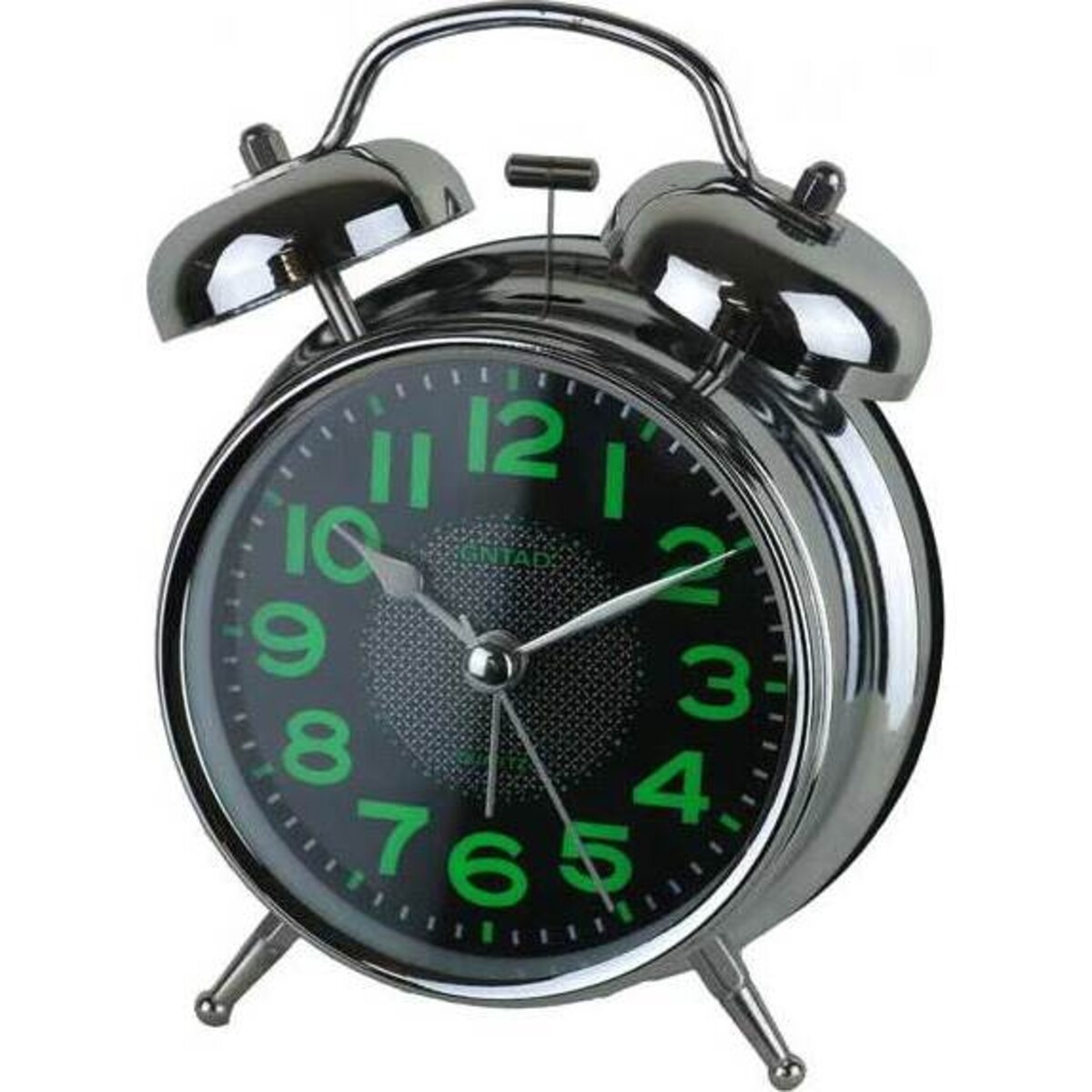 These lovely round alarm clocks feature a black face along with green over-sized numbers so you can easily see the time from wherever you are in the room. At the bottom are two short yet sturdy legs so the clocks can stay securely in place without sliding around and on top are two bells that are responsible for sounding you awake in the morning. If you're the type of person who has a difficult time getting out of bed, don't hesitate to put one alarm clock near you and another far away so you have no choice but to get up and get moving!