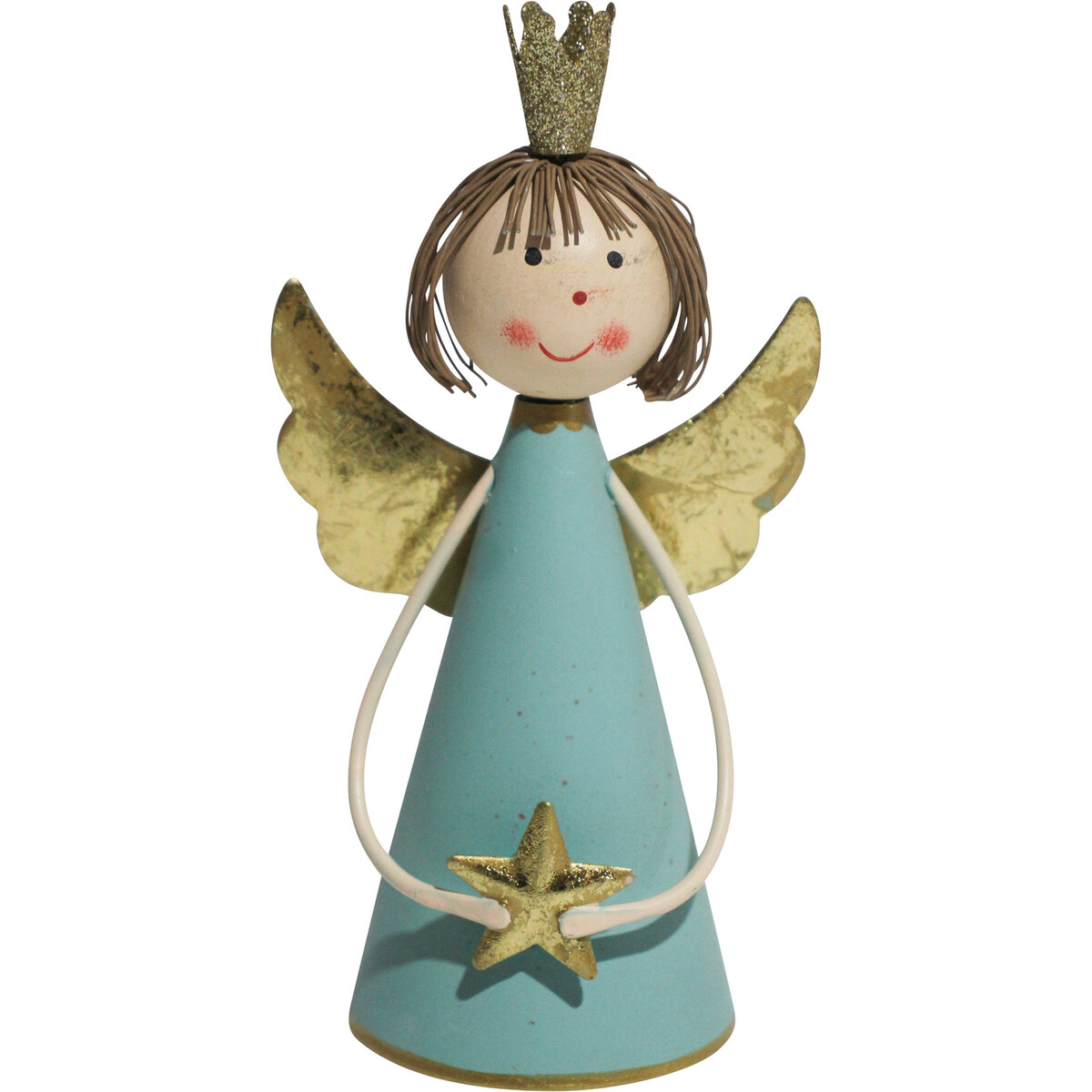 Add a touch of serenity to your spaces with this angelic presence. Made from metal, it shows off very fine little details like the fresh faced look - the little star in her hand, the crown that glitters in gold and the wings in sparkling gold. Will adorn any space with her sweet and peaceful presence. Could be made part of the larger display or you could create a display with more such shabby chic themed vintage look metal figurines that add a touch of whimsy and yet lean into things traditional associated with the festive season.