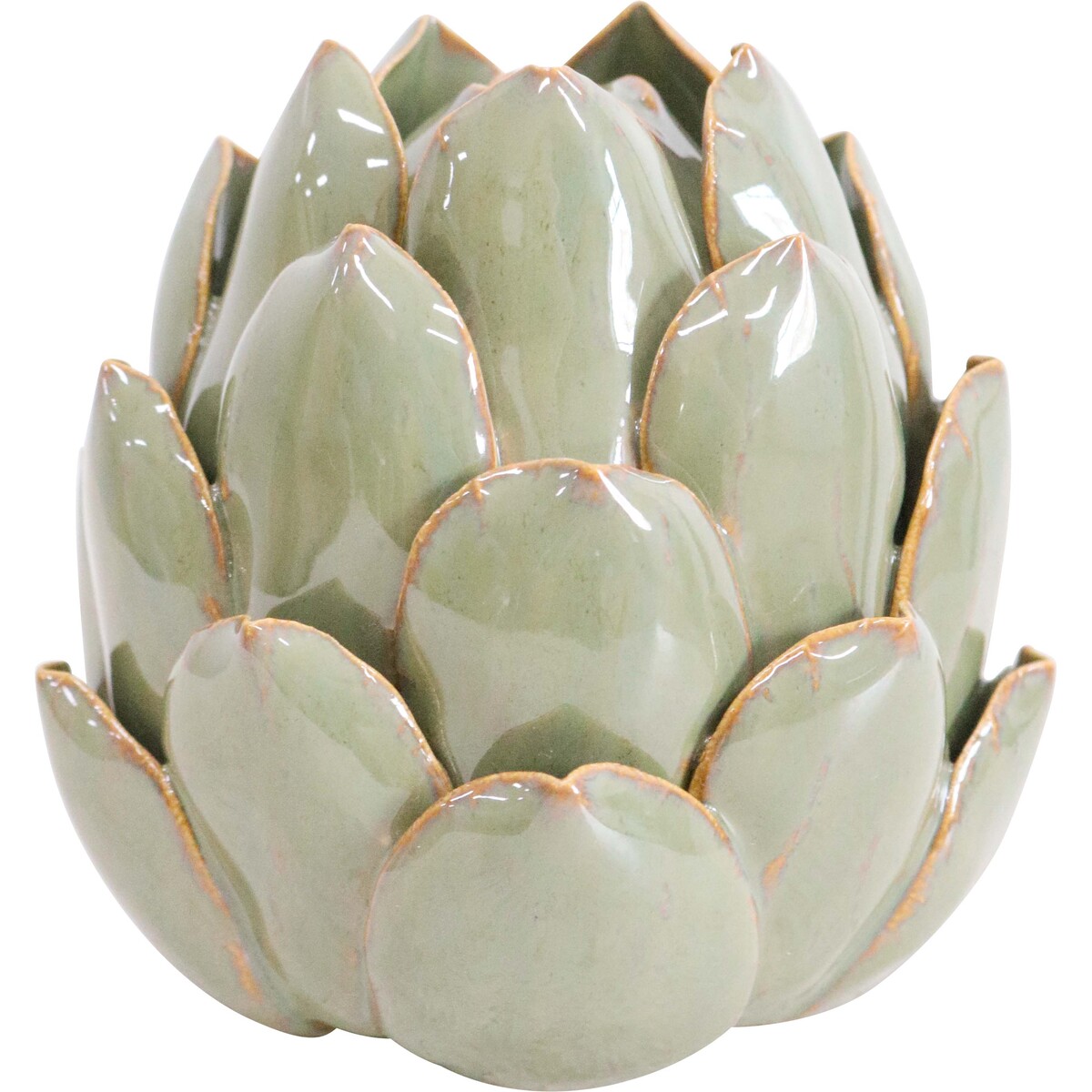 Artichoke Decoration Sage is one of those pieces that always seems to surprise people when they see it in our collection. It’s a simple concept, really – a little ceramic artichoke, finished by hand with sage green glazing. Each one is just that little bit different from the next, so your shop can tell a story about the uniqueness of each piece - and we’ve found that customers love that sort of thing. At 9x9x9cm it’s compact enough to fit in just about any corner of the home or office but has enough detail to actually draw the eye. Whether someone wants a gentle nod to nature or something quirky for their bookshelf, this fits right in. The subtle shade works beautifully with earthy palettes and cream ceramics – it’s obviously inspired by classic European pottery but it isn’t stuffy about it. We think that’s the real charm here – no pretence, just personality.