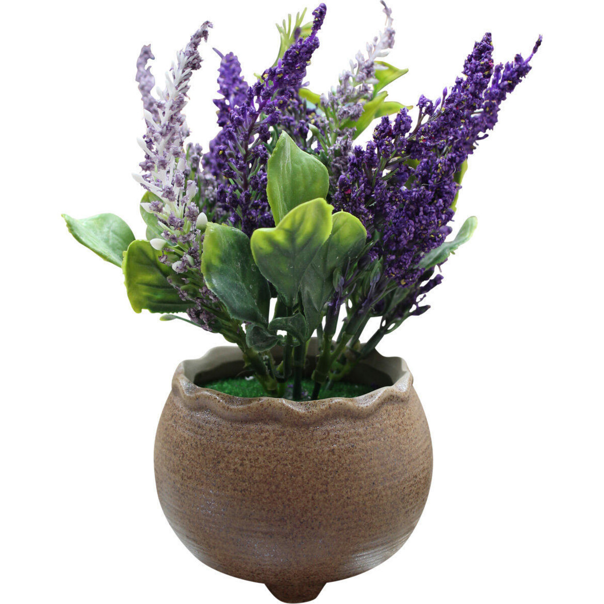 Tempt your spaces into a whole new feel of beauty by adding to put one of the most fragrant of blooms that comes neatly created in an artificial form, so like the real things that one would be tempted to touch and feel it to believe if it were for real or not. The soft lilac colour the leave sin broad thick quality surrounding it makes for a life like imitation that is hard to resist of giving your spaces a natural feel and beauty is on your mind. The size too is the kind that will help it to fit it into the smallest of spaces-then be it your window sill, the top of tables and shelves your own bedside, you will find it looking resplendent and not too imposing while still making its presence felt ever so softly. The height of the potted bloom is all of 16 cm, and it's been hand pressed on to the foam below seated as it is in a fine quality ceramic made pot in an earthy brown colour.