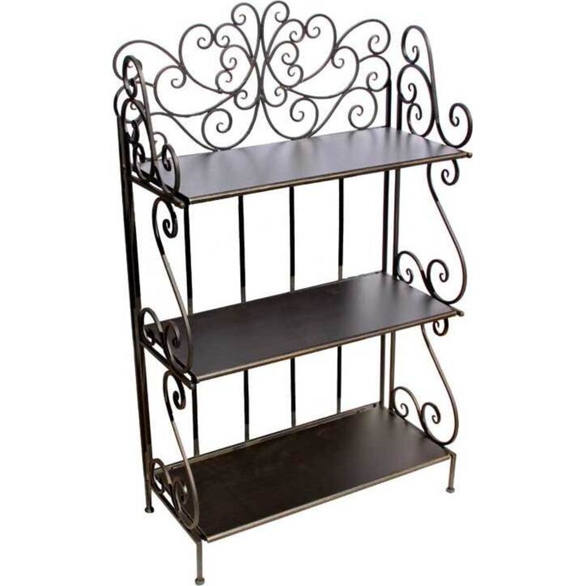 LaVida's Bakers Stand Provence is a stylish addition to any kitchen and a convenient way to keep books or cookware handy. Three shelves make up this metal stand, which is accentuated with multiple metal scrolls along the top and sides for a taste of sophistication and elegance.