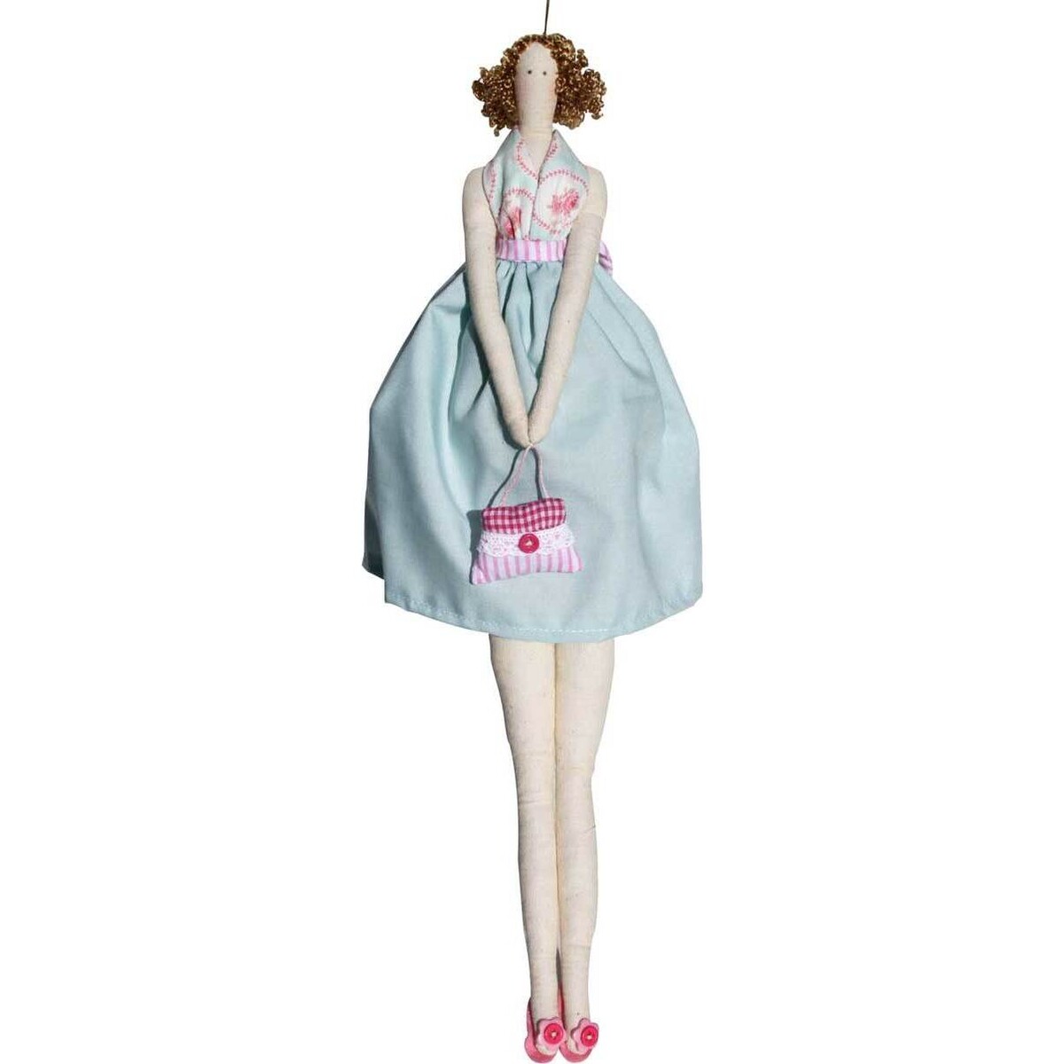 Our Large Ballet Girl has pinpoint eyes and curly hair that wafts uncontrollably from her head. Hang her on a wall or drawer pull and watch the reaction as customers remark over her wonderfully amusing appeal. • Doll body is 100% cotton muslin • Light blue poly-cotton skirt with medallion printed halter top • Pink and white striped belt ties into a bow in the back, and matching purse has white crochet trim and red and white accent fabric • Hair is curly nylon • Pink "rosette" shoes have faux pearl trim • Doll hangs from a braided cord • Not suitable for children under 3 years of age Stores stock this adorable little girl with all your children's departments including infants, girls, clothes, furnishings, books, toys, and dolls. Use it to complement party and holiday displays.