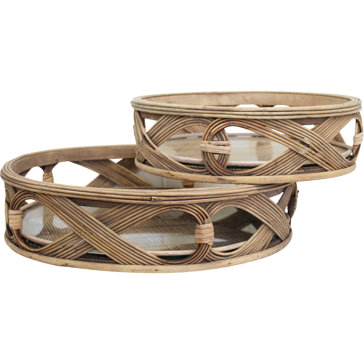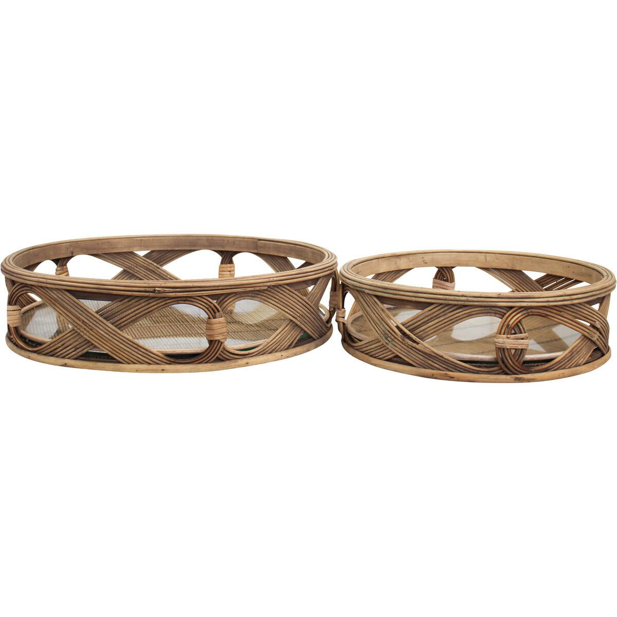 Ornately crafted with a natural themed aesthetic finesse, the Bamboo Trays w/Glass Nat Set 2 would certainly be found charming by quite a lot of your savvy clientele. Each of the two trays contained in this set is crafted using carefully selected 100% all natural bamboo, specially engineered medium density fibreboard material and high quality glass material in a spherical shape. The interior base is covered by glass while framing this is an artfully woven bamboo. There is a small sized version which measures 32 centimetres in length and width while the second is a large size measuring 41 centimetres in length and width.