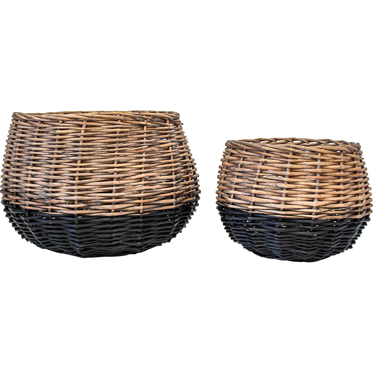 Make organizational goals in your home most achievable with this set of willow baskets that come in two tones and in two different sizes-be it for keeping extra table linen, or toys in the children's room or even for keeping fresh pick from the garden. The willow makes it a sturdy set-the weave dense and yet not too bulky or heavy. The baskets are shaped in a curved manner. The darker lower body adds a touch of style to their look. The baskets have a wide opening and thus despite their small size they still will take in lot of your things with ease. Will also be useful when you use it at the back of the car to place your shopping. The larger one is 22 cm in height while the smaller one is 17 cm. being lightweight, they can eb picked and moved around with ease and the shape has been created making sure that it remains perfectly balanced even when filled to the top.
