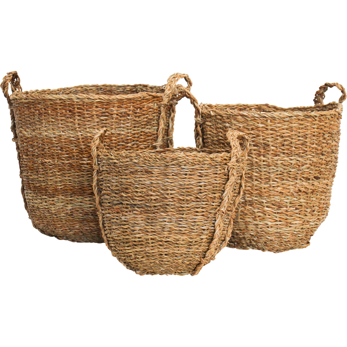 At home, any and all of the three differently sized basket in this Basket Double Handle S/3 can be used as laundry baskets, storage baskets, and whatever else pleases the customer. In shops and markets, any and all of these baskets can be used both as a storage basket as well as a display basket. Sellers of fruits, veggies and other fresh foods will recognise just how functionally useful these baskets are in displaying their wares. Its design which features reinforced ergonomic handles would come in handy when the need to carry these baskets arises. Please note that there may be a little variance in size and finish.