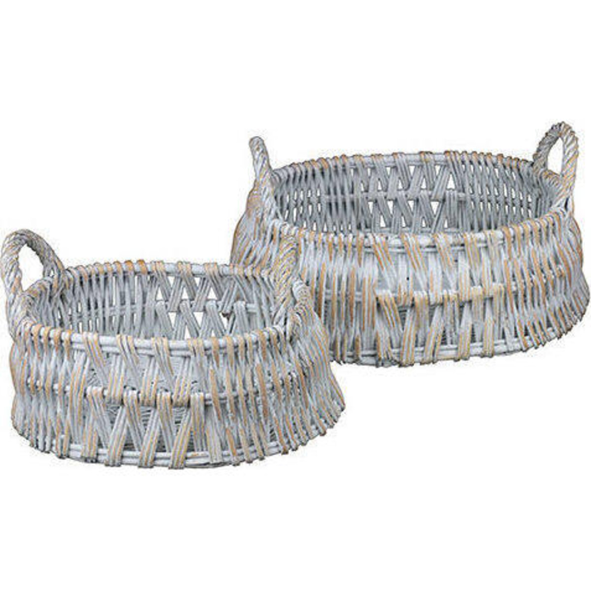Rattan is tough and have traditionally been around for very long owing to its basic ability to fit into all kinds of environments including kitchen, bedroom, the children's room and likes. The oval baskets here are structured well, solid in styling with a hint of colour wash that lends them a pretty look and a chic design that is shabby. Could be used for placing fresh fruits and vegetables or for keeping knick - knacks and washed face towels and the likes. The handles allow it to be used as a serving tray for fresh bakes and thus its versatility knows no bounds. The larger one is all of 38 cm in length while the smaller is 29 cm in length. The gorgeous freshness that rattan brings to the space makes it such a favourite in most homes and in this case - your fruit basket need or for that matter your fresh bakes, the touch of its traditional weave with wield its own magic.