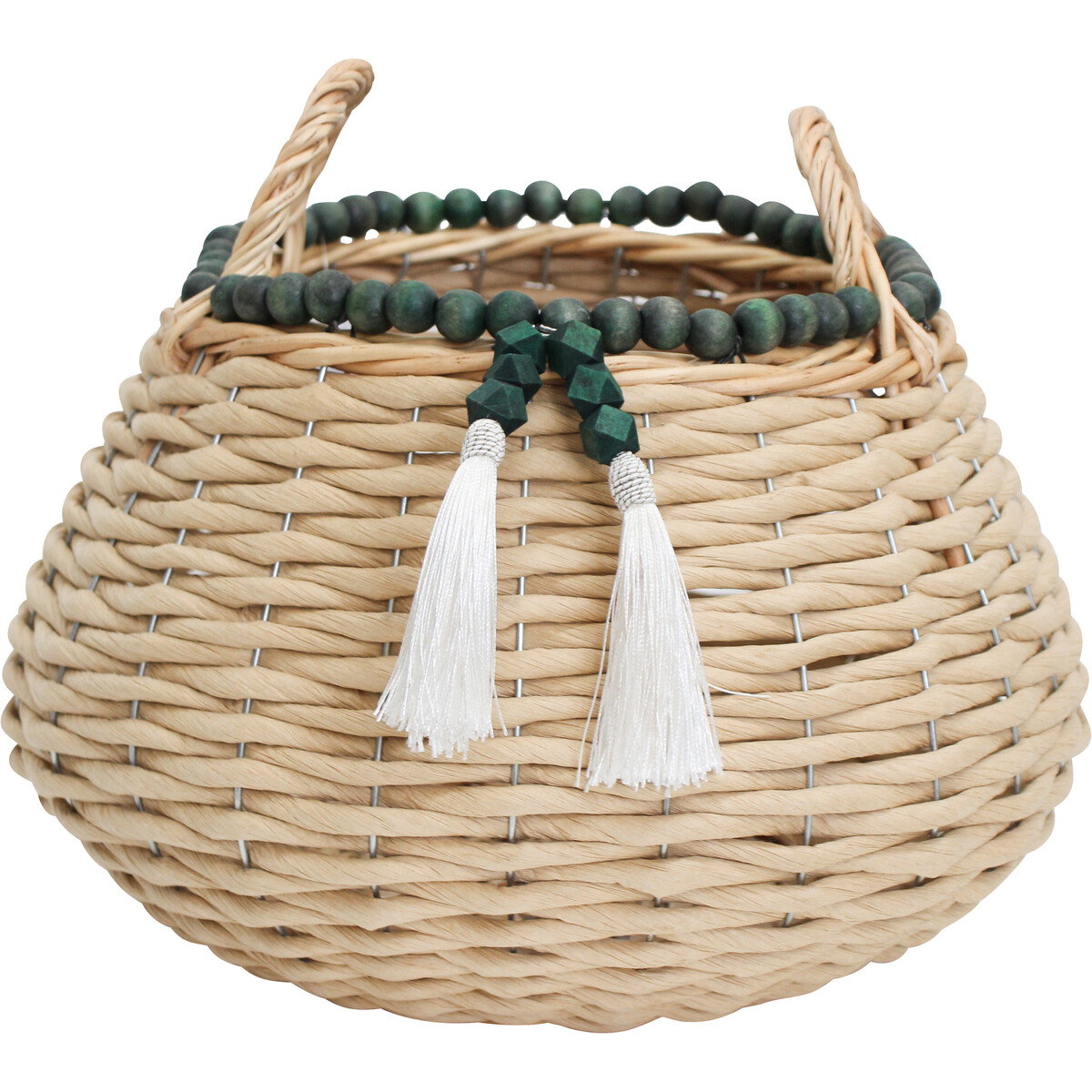 A quick word on style, too. The forest-green beaded edge and white tassels are such a unique touch - something you won’t see much of in the market - and help these baskets work across earthy bohemian styles, contemporary coastal, or even modern minimalist themes as an accent piece. What’s not to love?