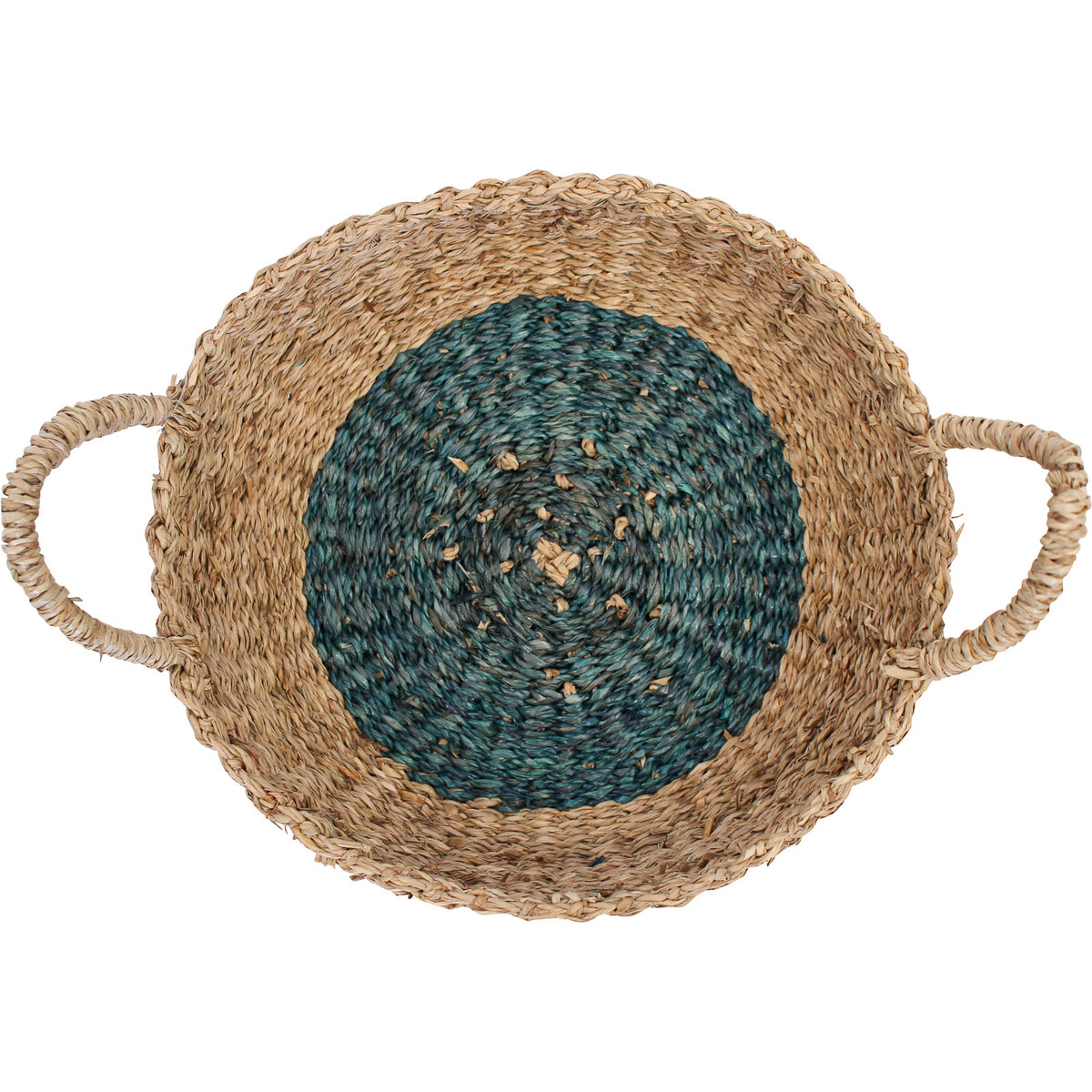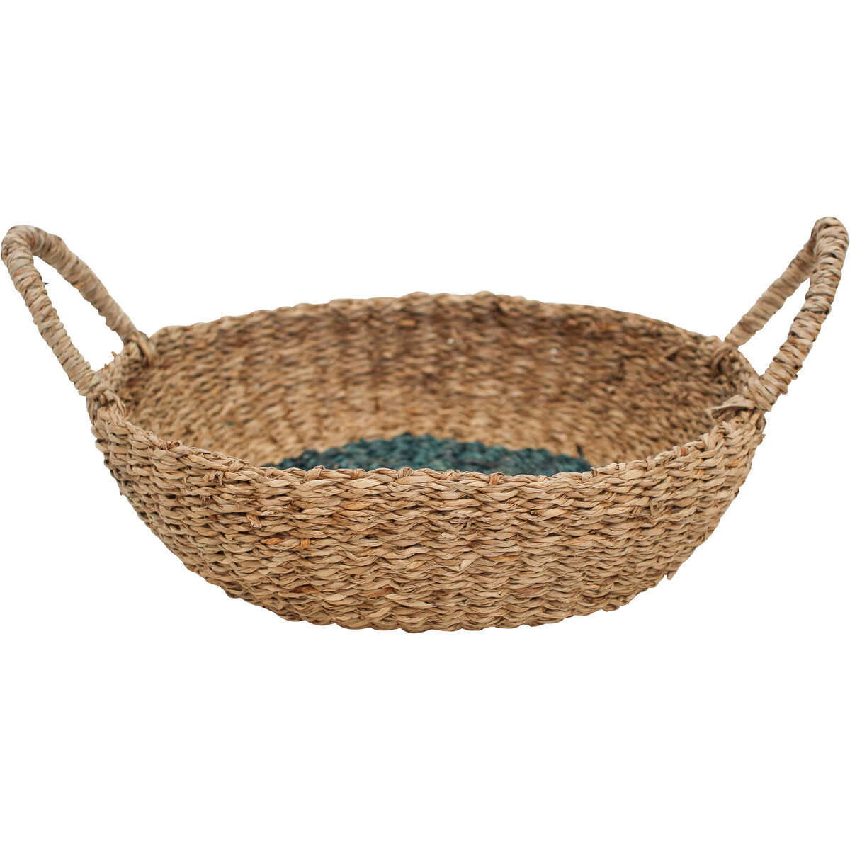 The Basket Pop Aqua showcases a pop of colour and country class. Though a hand woven basket, it nonetheless possesses an exceptional visual appeal given its use of natural carefully selected sea grass material plus the artful unique hand crafting which is finished in a bright polychromatic combination of brown and aqua blue colours. The basket is predominantly sea-grass brown while the interior centre is hand painted in spherical shaped aqua shade of blue hue. Please note that each of this basket varies in size and finishing as each is uniquely hand crafted.