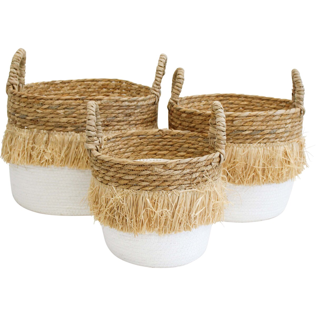 Introduce warmth and charm into any space with our exquisite Basket S/3 Tidy Abud, an impeccable set of three handcrafted baskets designed for both style and functionality. Made from a delightful blend of grass, paper, and raffia, these uniquely designed baskets add a rustic and natural touch to home or office decor. Each basket varies slightly in size and colour, embracing the beauty of natural materials. The dimensions cater perfectly to different storage needs: large (33x33x26 cm), medium (28x28x23 cm), and small (23x23x20 cm).