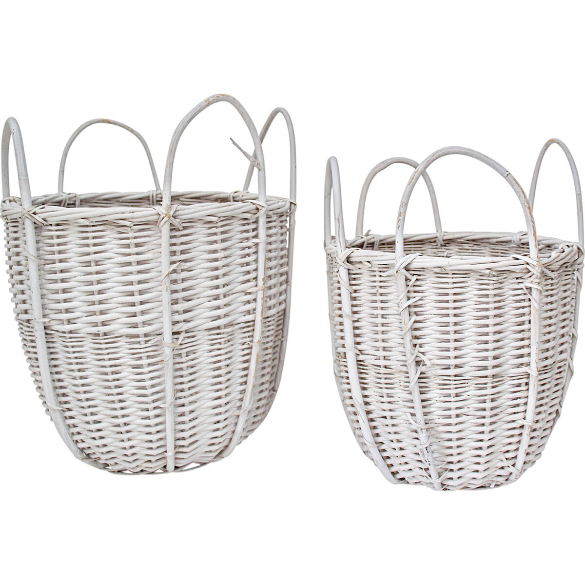 Crafted from willow-these washed in white baskets with curved handles are such a delightful means to give your spaces a touch of clean and well-organized feel. Made from sturdy willow-it is a sure means to keep your spaces looking neat and tidy while lending it that all-purpose space where you could keep -your linen, washed clothes, toys in the children's room or simply all the fresh vegetables you bought at the farmer's market-or simply keep it nestled one inside the other at the back of the car to carry inside your shopping. The handle makes it easy to carry from both sides. They are sized in such manner that the smaller will fit into the larger one. Spaces need sturdy organizers and these washed in white baskets come in a size which makes them completely versatile in its usage.