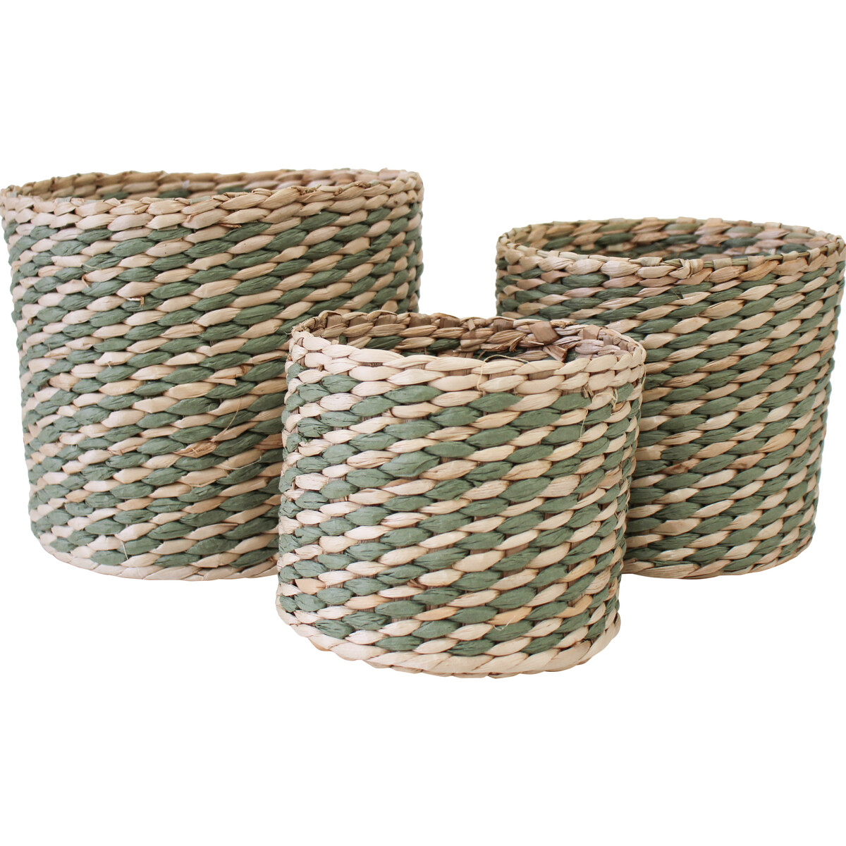 Made from rush, the intricate weave a work of skilled hands-the planters perfectly shaped and designed in dual toned fibre-makes it such an attractive option for your green corner. After all, your potted greens need that all important basket that will help make them look their best when made part of the décor. The weave and the colours in the set adds to their attractiveness. It will be as helpful if used as organizers- these multipurpose baskets are sturdy, hand crafted and made in the traditional way that ensures their resilience and longevity. Will play host to clay or plastic pots alike. The three in the set come in varying sizes thus helping display of different kinds of plants.