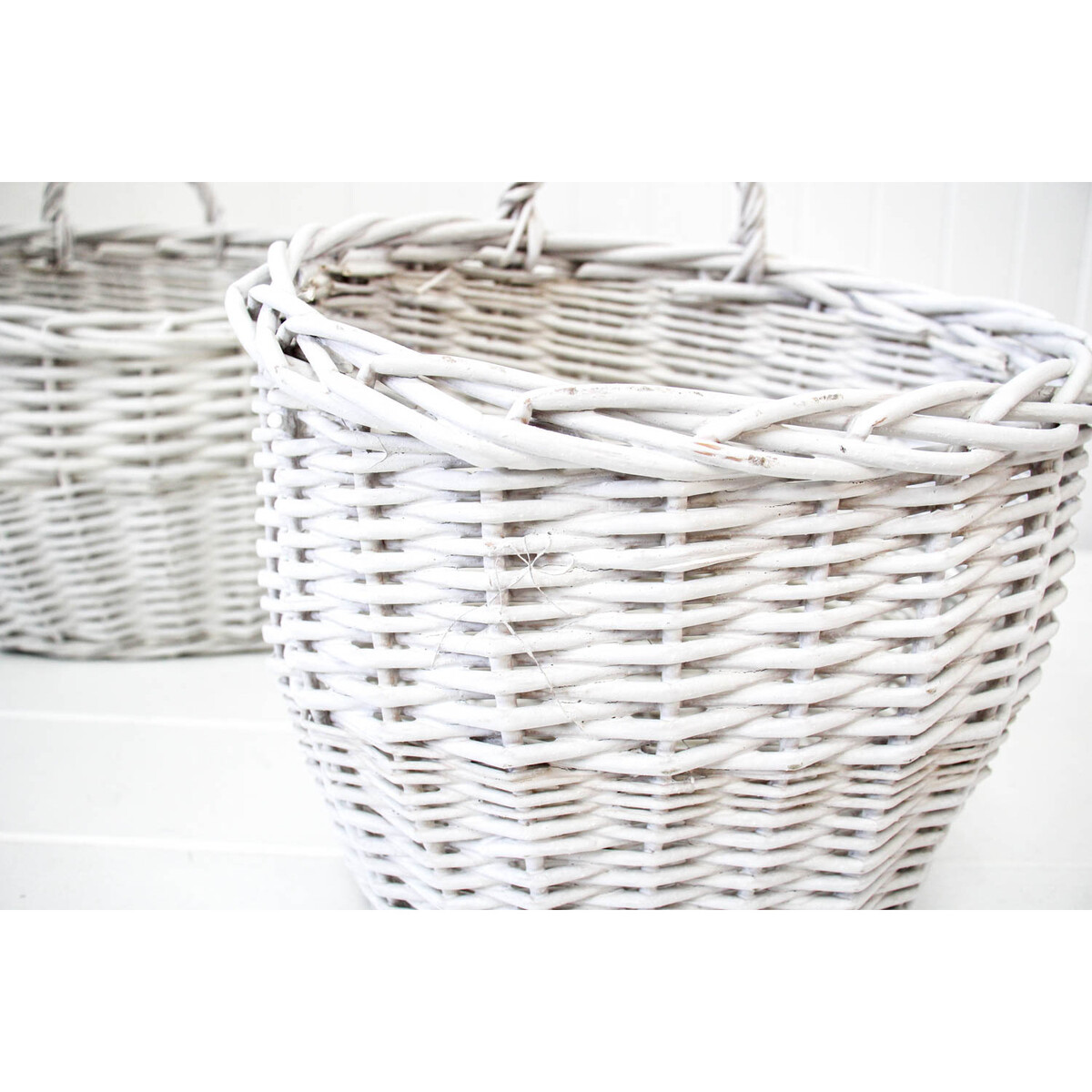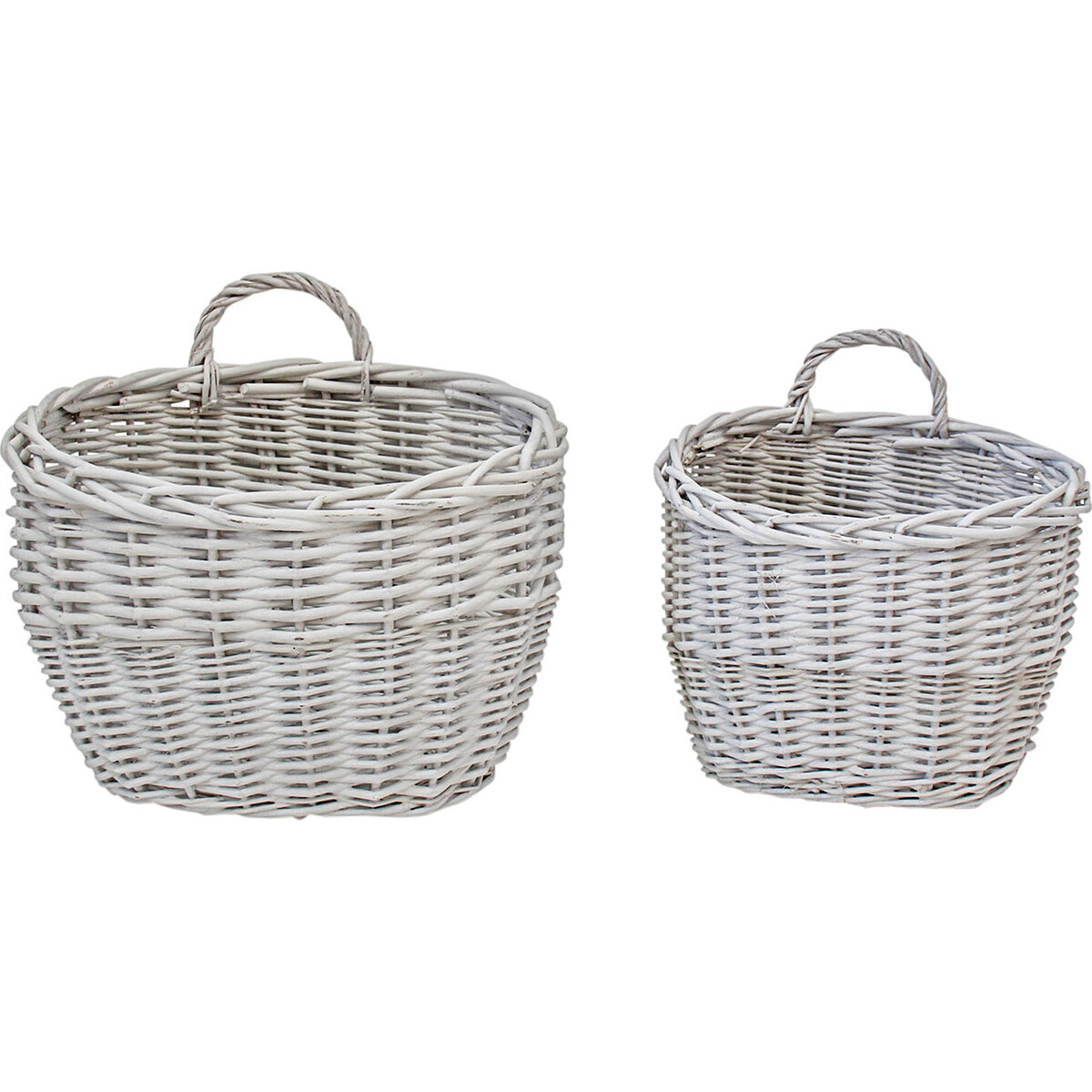 Handcrafted in a cylindrical form and shape, this Baskets Halsey White S/2 has each basket uniquely crafted such that none looks like another as there are unique variations in rustic finish, shape and overall design. The set consists of two different sizes of small and large with the small sized basket measuring 26 centimetres in length and 22 centimetres in height. The large sized basket on the other hand measures 32 centimetres in length and 24 centimetres in height. Each basket also has an ergonomic handle and painted in a rustic white finish.