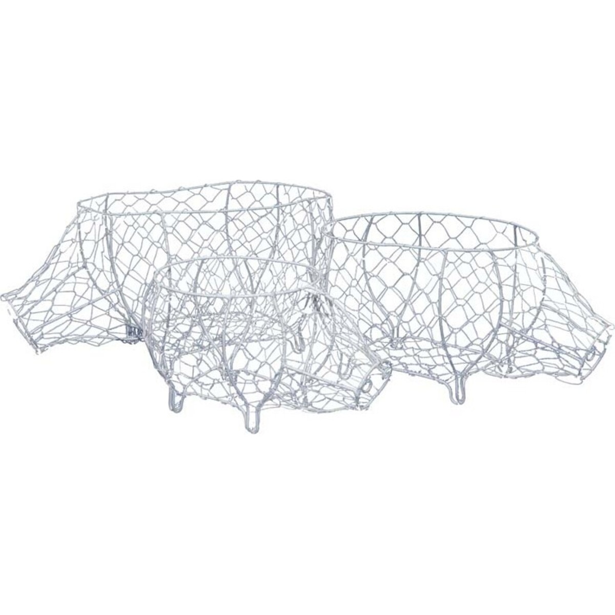 Displaying three baskets of wire shaped to resemble pigs of various sizes is sure to attract attention. People will not believe their eyes when they are laid upon this delightful set. There are many wire baskets, but too few are shaped to resemble farm animals. For full effect it would do well to place some kind of small brightly coloured objects inside to bring out the whiteness of the wire as well as the pig shape itself. Brightly hued eggs would look nice, as would apples and oranges, or some large bits of potpourri. Line them up in a set of three and put different materials inside. It is almost a shame that pigs do not lay eggs because pig eggs would look great inside this set of three charming wire baskets.