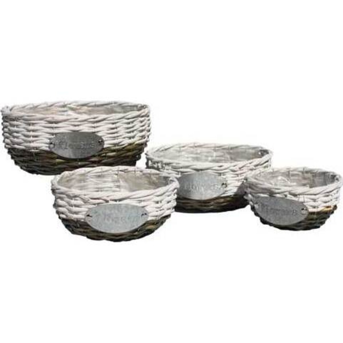 A set of four storage baskets helps to maintain any efforts for a themed décor. Instead of opting for storage equipment of different shapes and materials, a set of baskets of the same material and shape glue together efforts to keep indoor décor in place. Have a need to store hair equipment, baby's toys or items you need for diaper changes as well as toiletries or even a few kitchen items? These round storage baskets are the ideal choice. They will help prevent sorting through piles of clothes or toiletries as well as add a decorative touch to nondescript corners of your home.