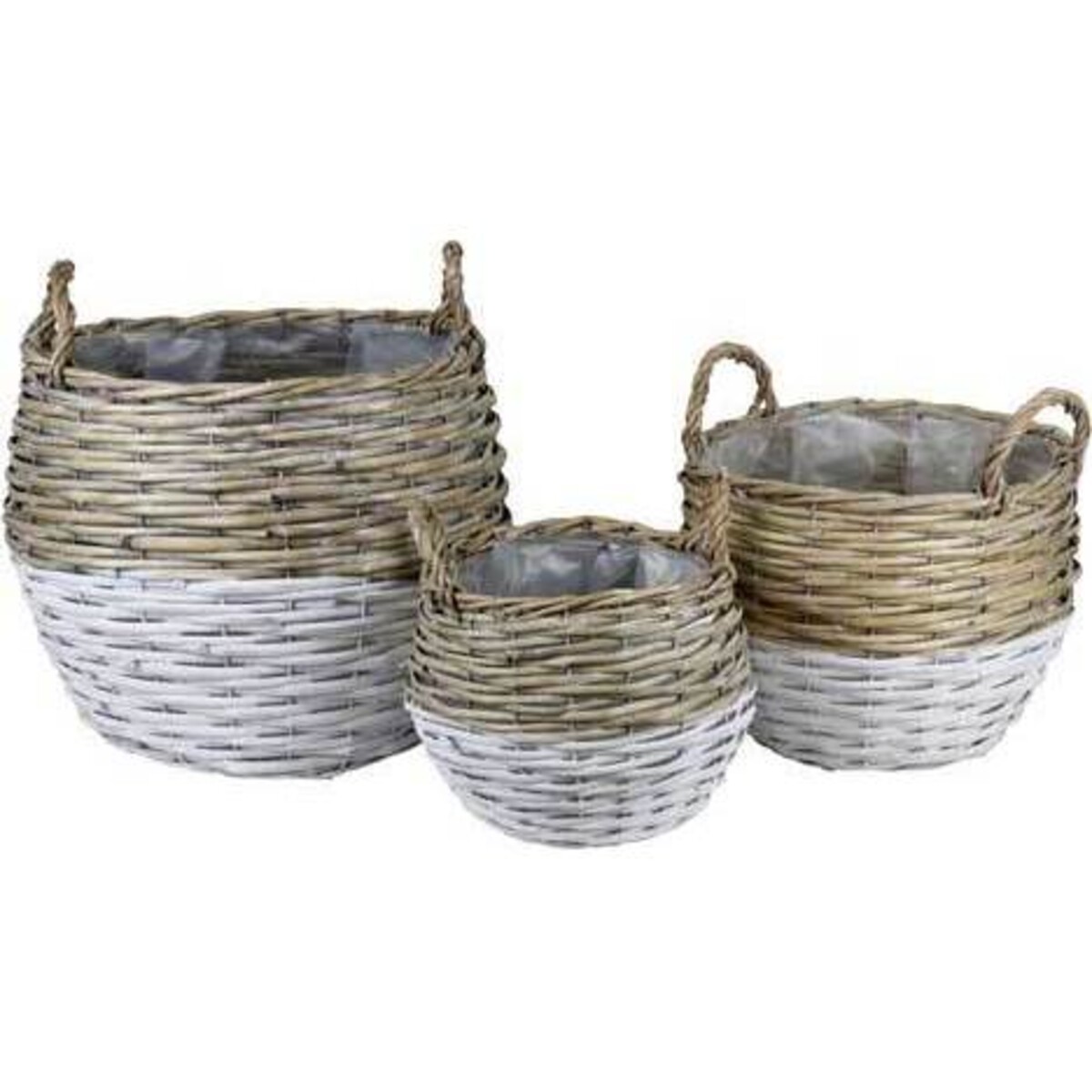 The baskets comes in three different sizes and be can be as multipurpose as any organizer - so be it keeping blankets by the bedside or the couch, the groceries in the store, or washed clothes as you fold them to set in the cupboard, toys in the children's room, for carrying essentials at the back of the car, or simply as part of a countryside feel decor , there can be so many ways by which these baskets with their dual tone colours can come in to play a role. The largest has height of 34 cm and diameter of 31 cm while the smallest in the set has a height of 23 cm and a diameter of 19 cm to make it the most valuable set for your home. Add the beauty of well crafted willow baskets that are strong and sturdy and come with an inner lining to keep safe all the material that you store here. They are also weather resistant and highly durable .